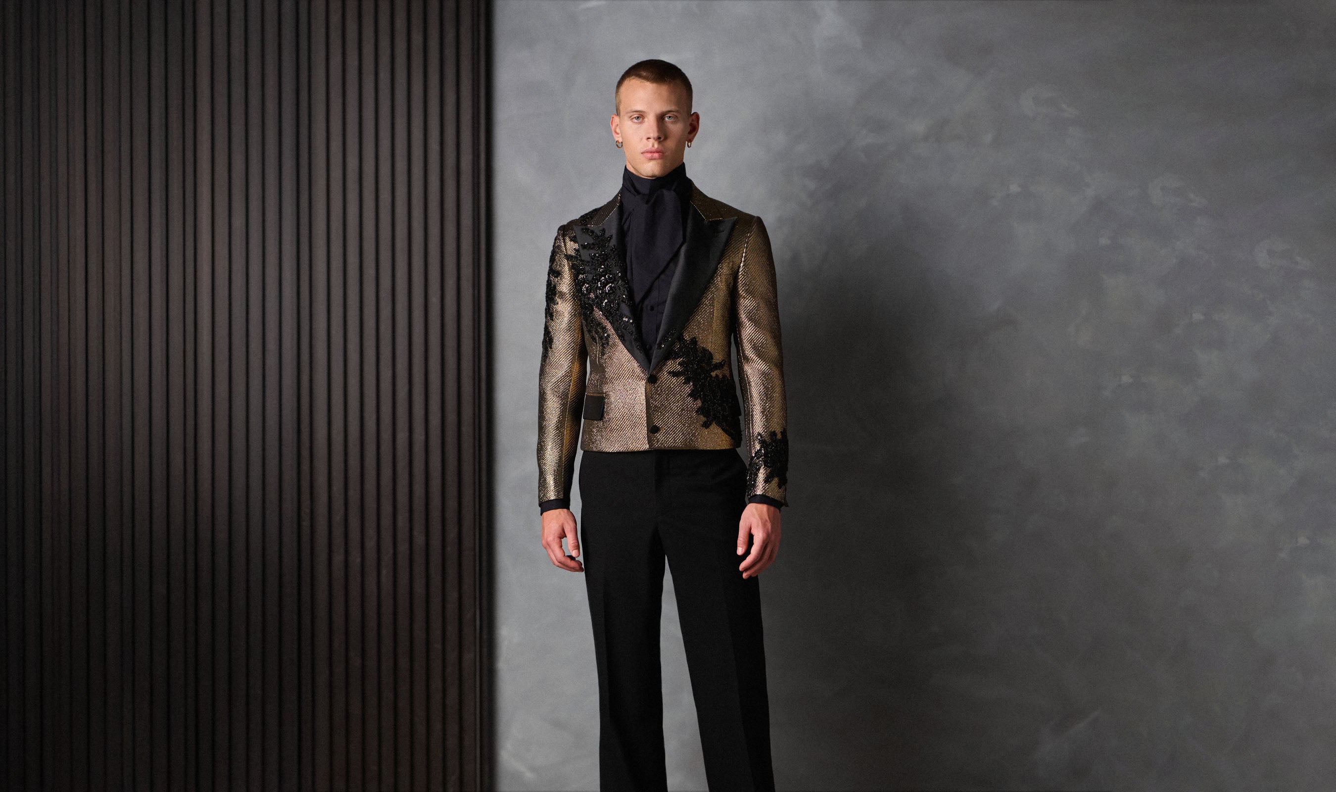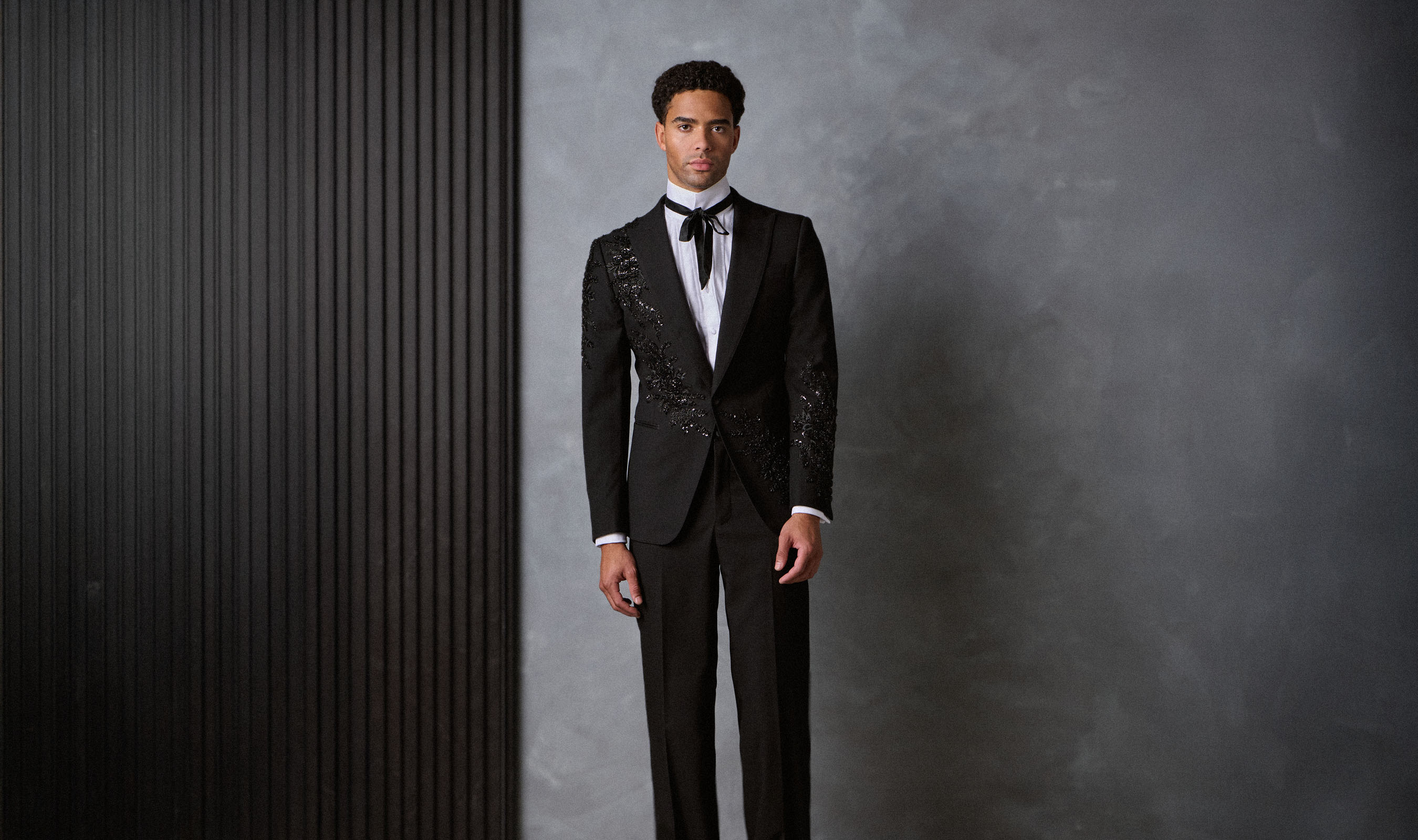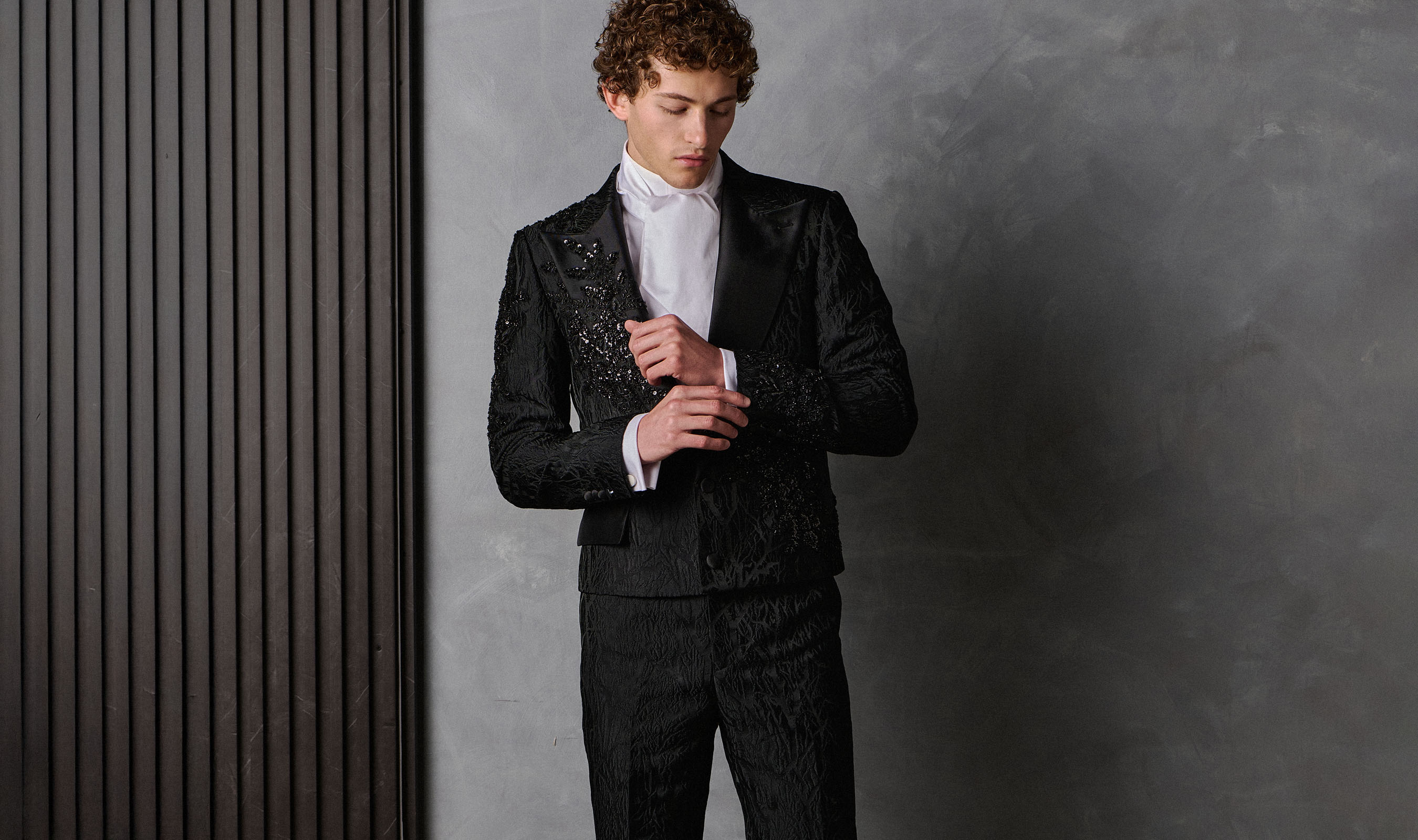 HARRISON BLACK BROCADE/WOOL TUXEDO SUIT - MADE TO ORDER
