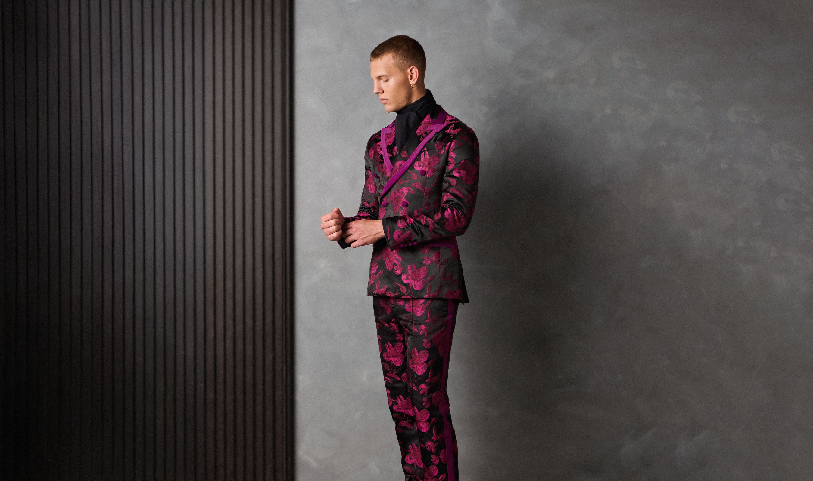 GIOVANNI MAGENTA FLORAL JACQUARD COCKTAIL SUIT - MADE TO ORDER