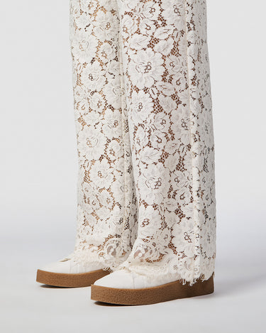 Amir is a wide leg pant made from embroidered lace fabric and features a scallop edge hem. This statement making pant is fully lined and features an elasticized waist for a casual sporty elegance.
