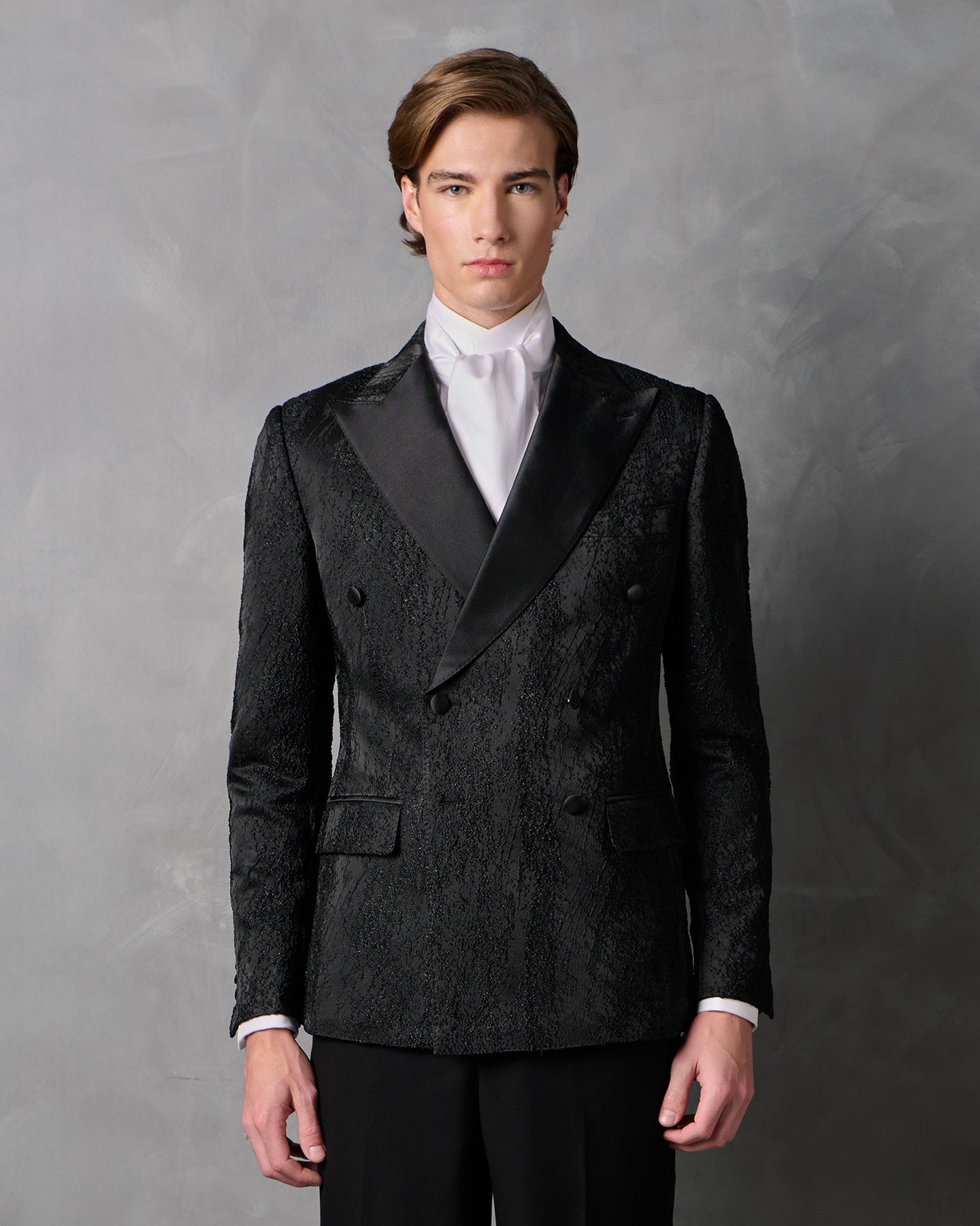 HARRISON BLACK BROCADE TUXEDO JACKET - MADE TO ORDER