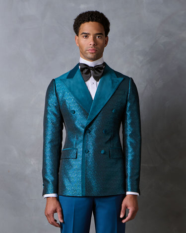 LEONARDO TEAL BROCADE TUXEDO JACKET - MADE TO ORDER