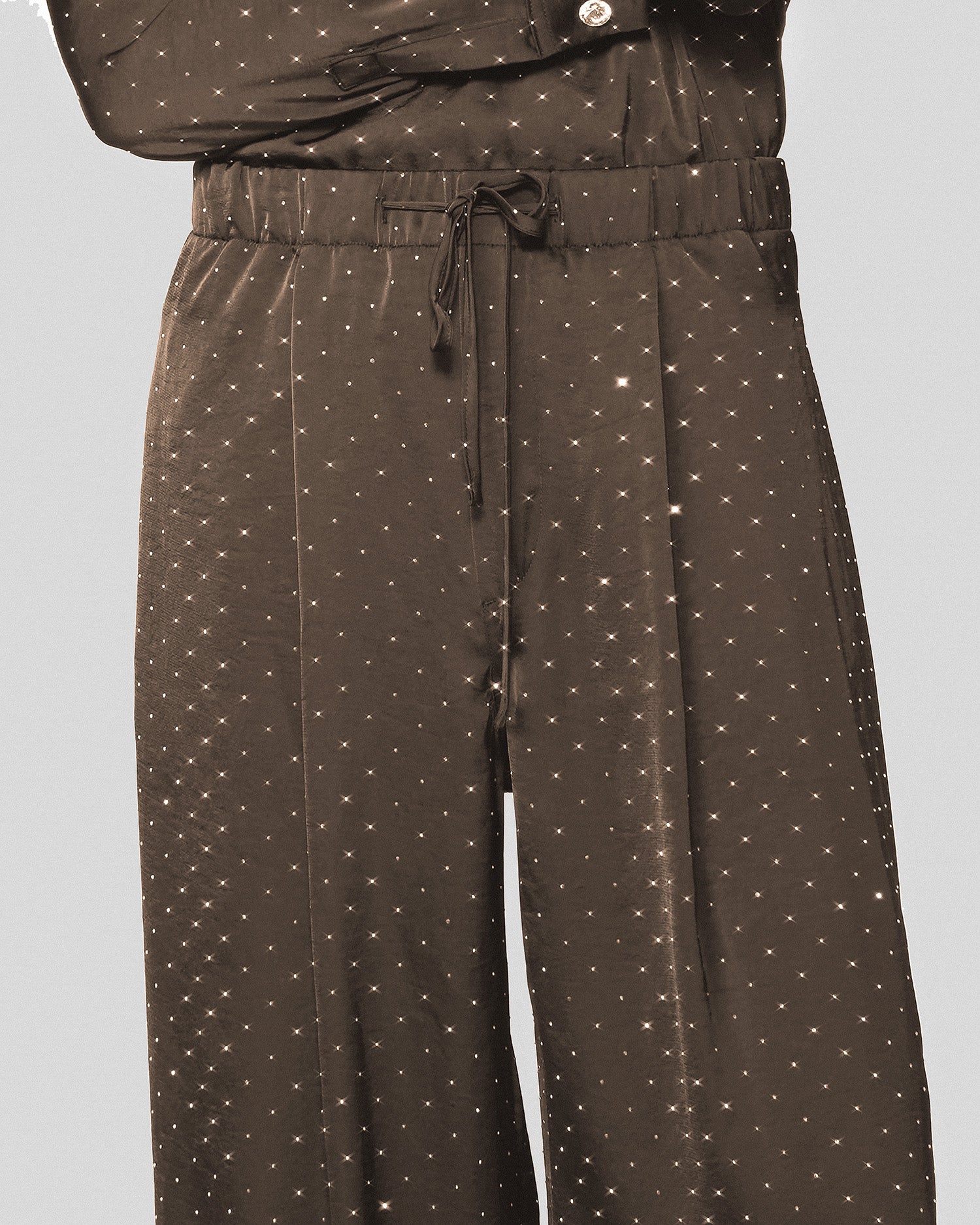 Egon Espresso Crystal Stud Satin Wide Leg Pant