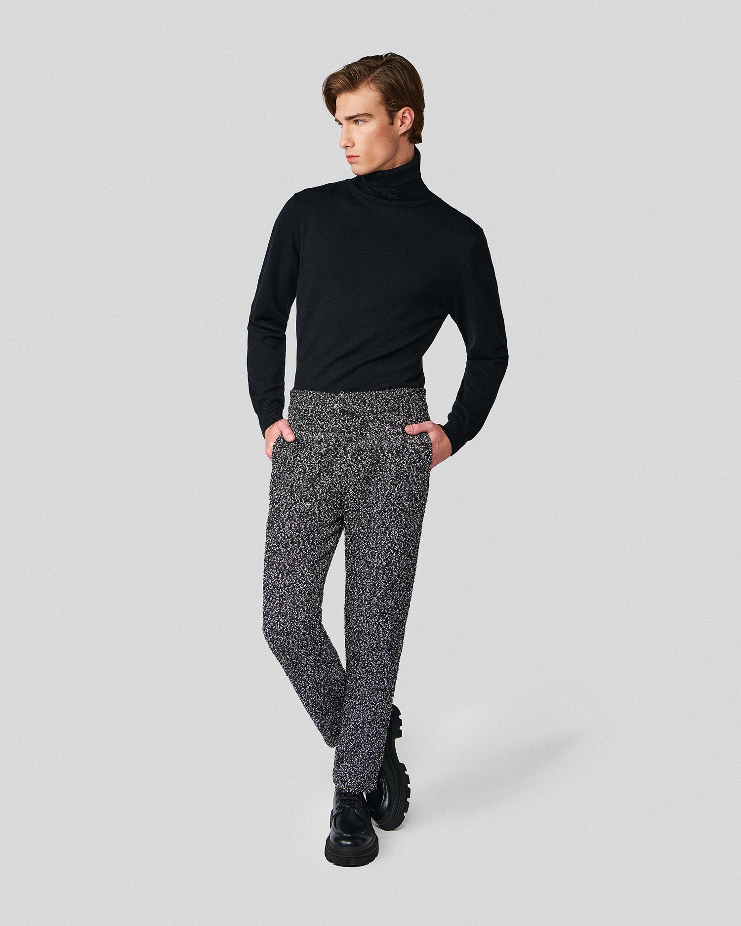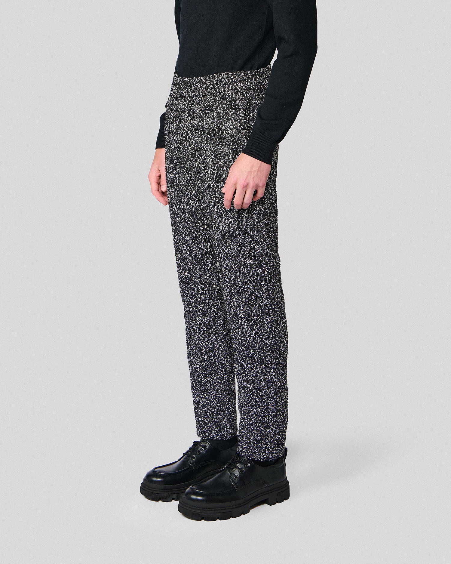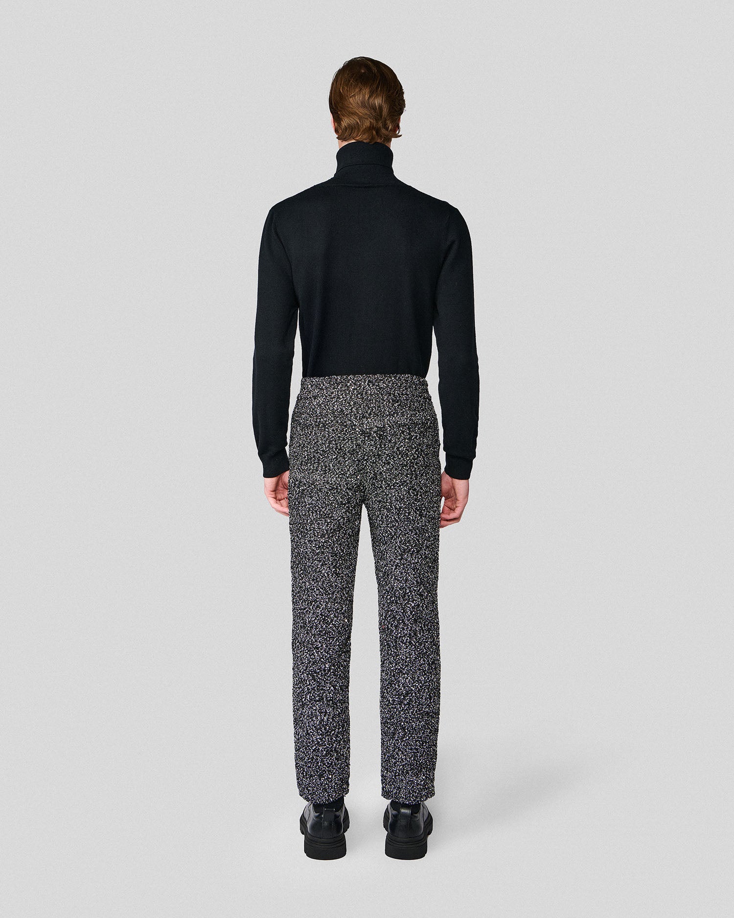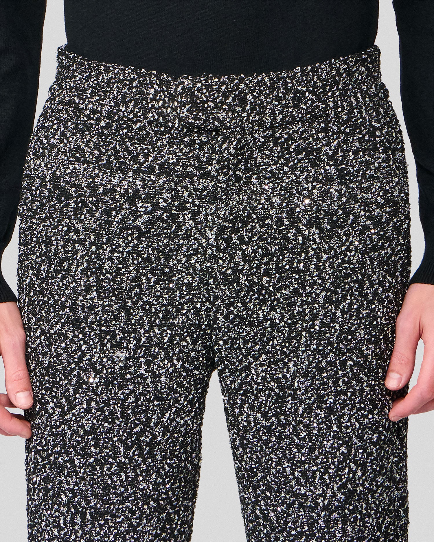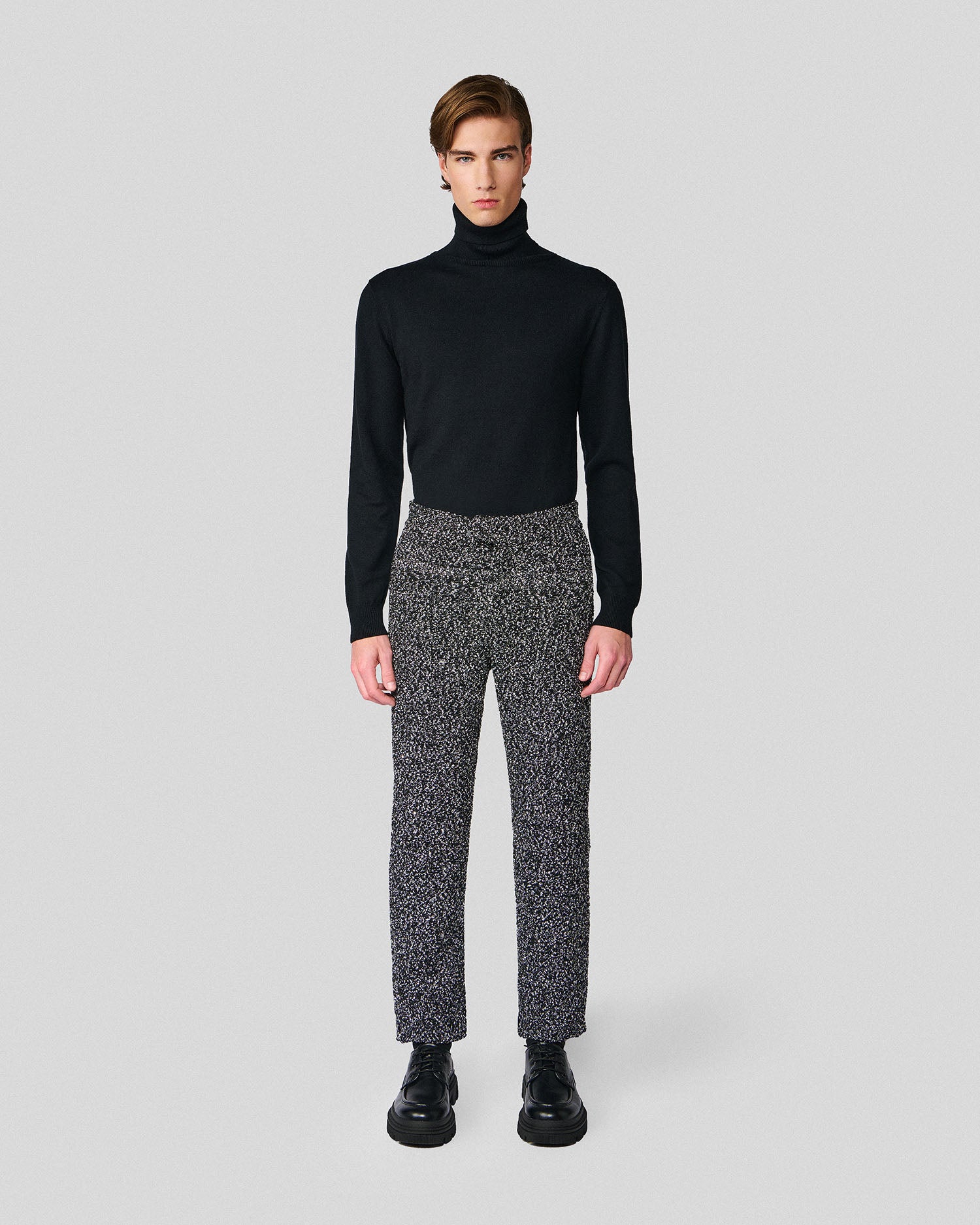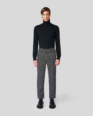 The Frederico Pant is made from a rich tweed dusted with silver mini sequins that catch the light. The fit is sleek and features a slim tapered leg shape.