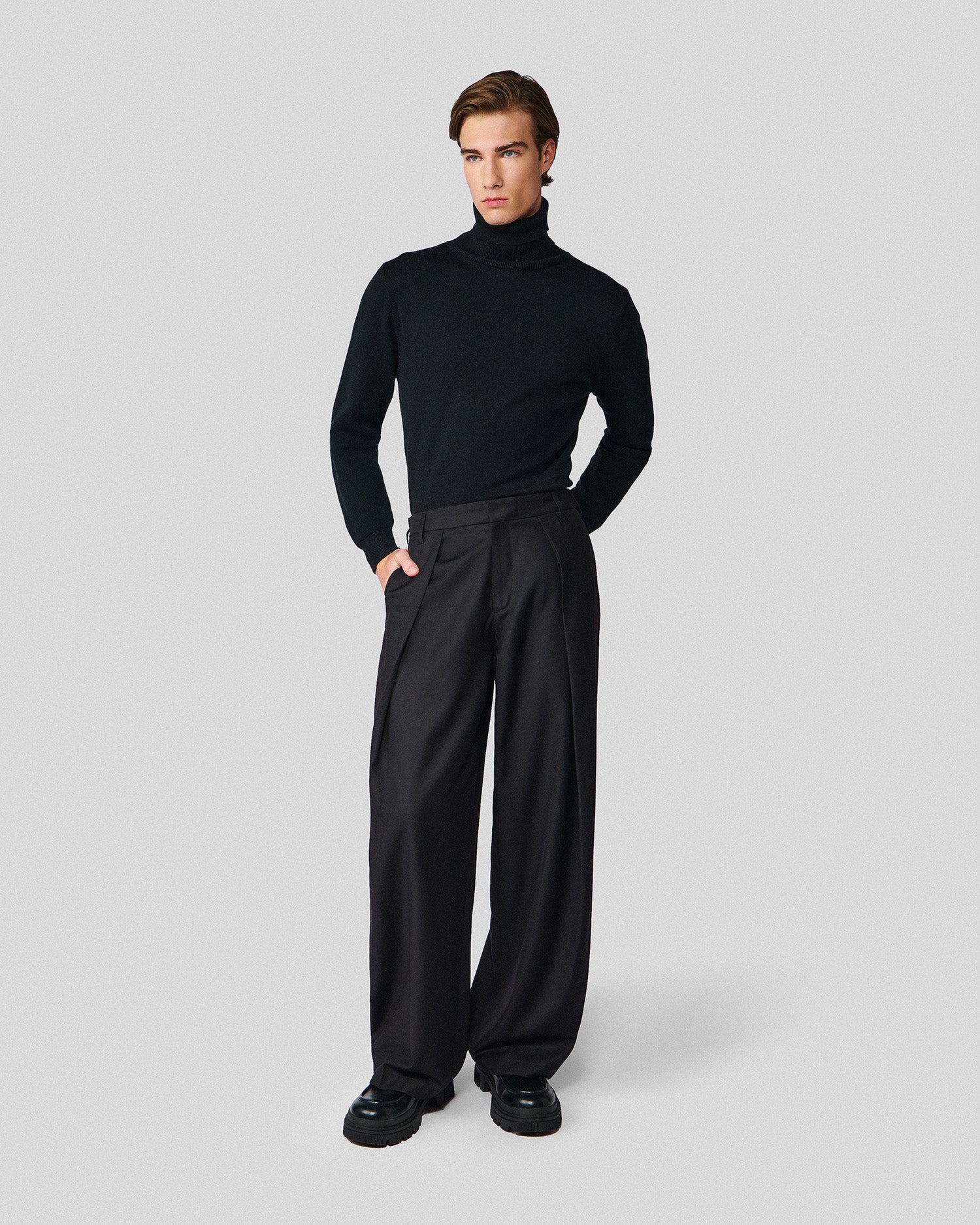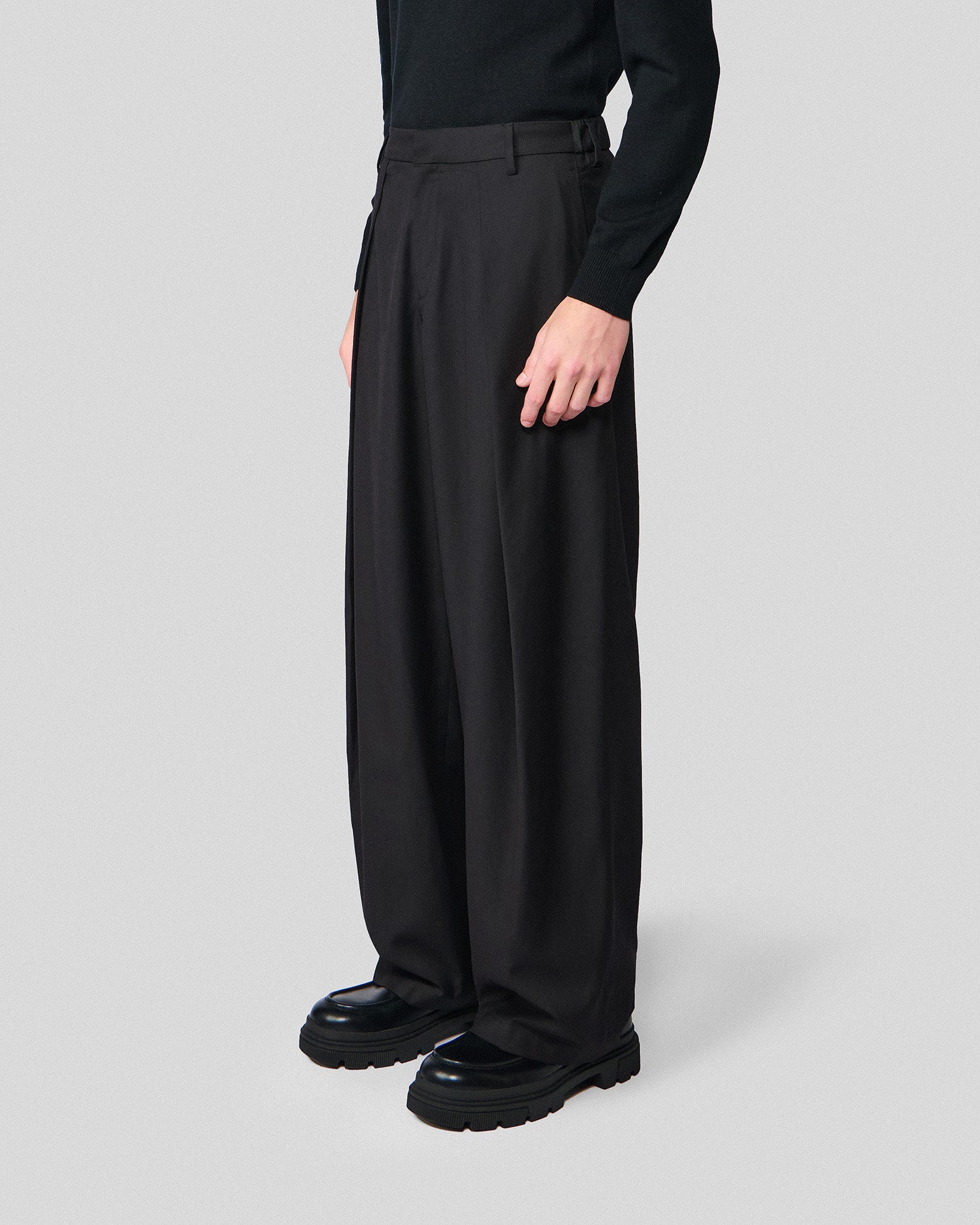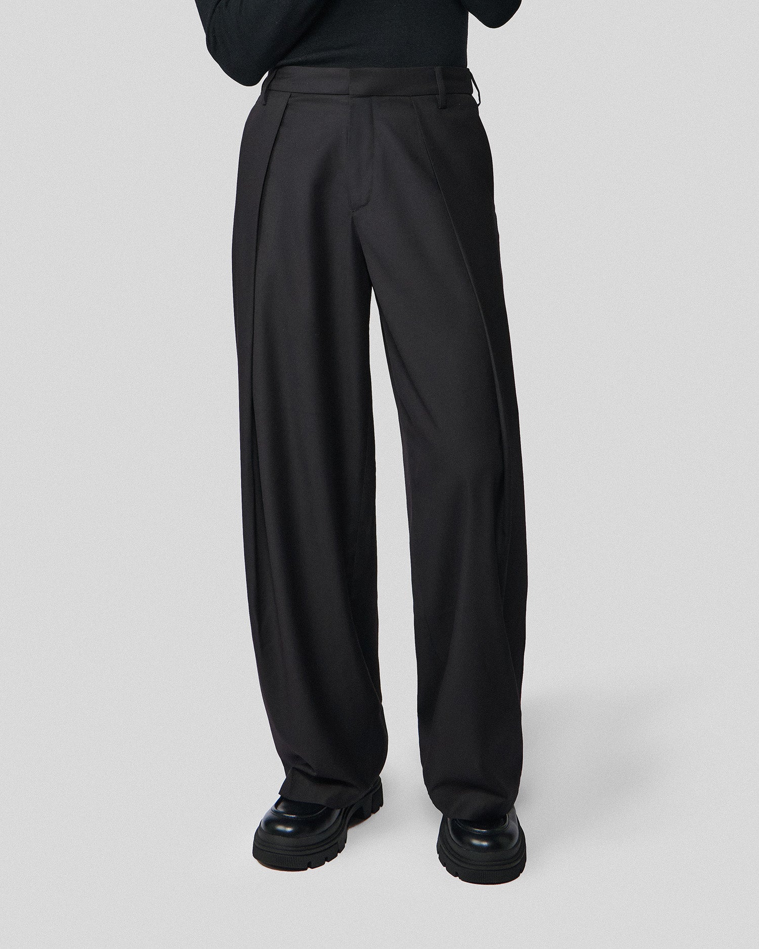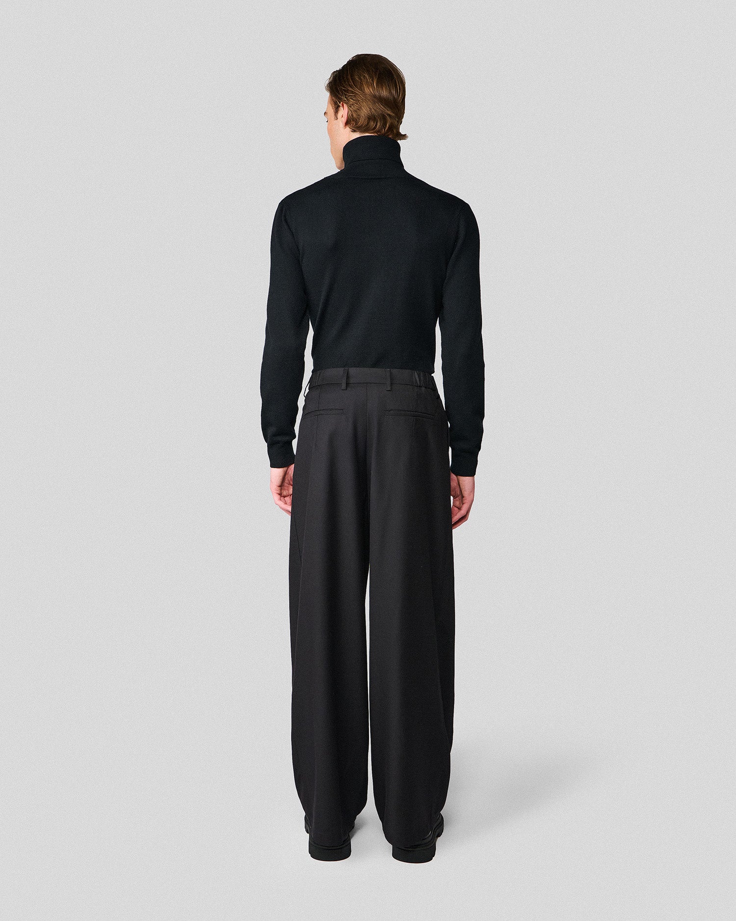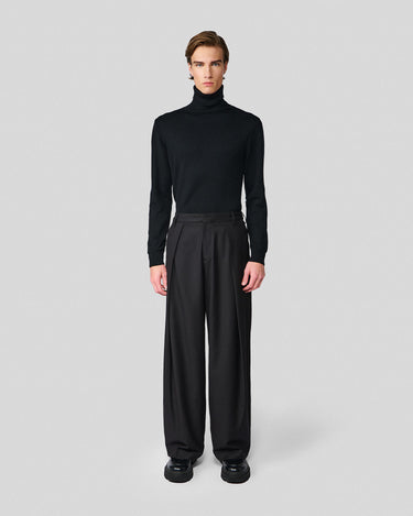 The Heath Pant features a deep inverted front pleat, wide leg cut that slightly tapers at the hem for a dramatic and stylish silhouette. Crafted from a light wool blended with viscose for softness this unique pant has major elevated appeal.