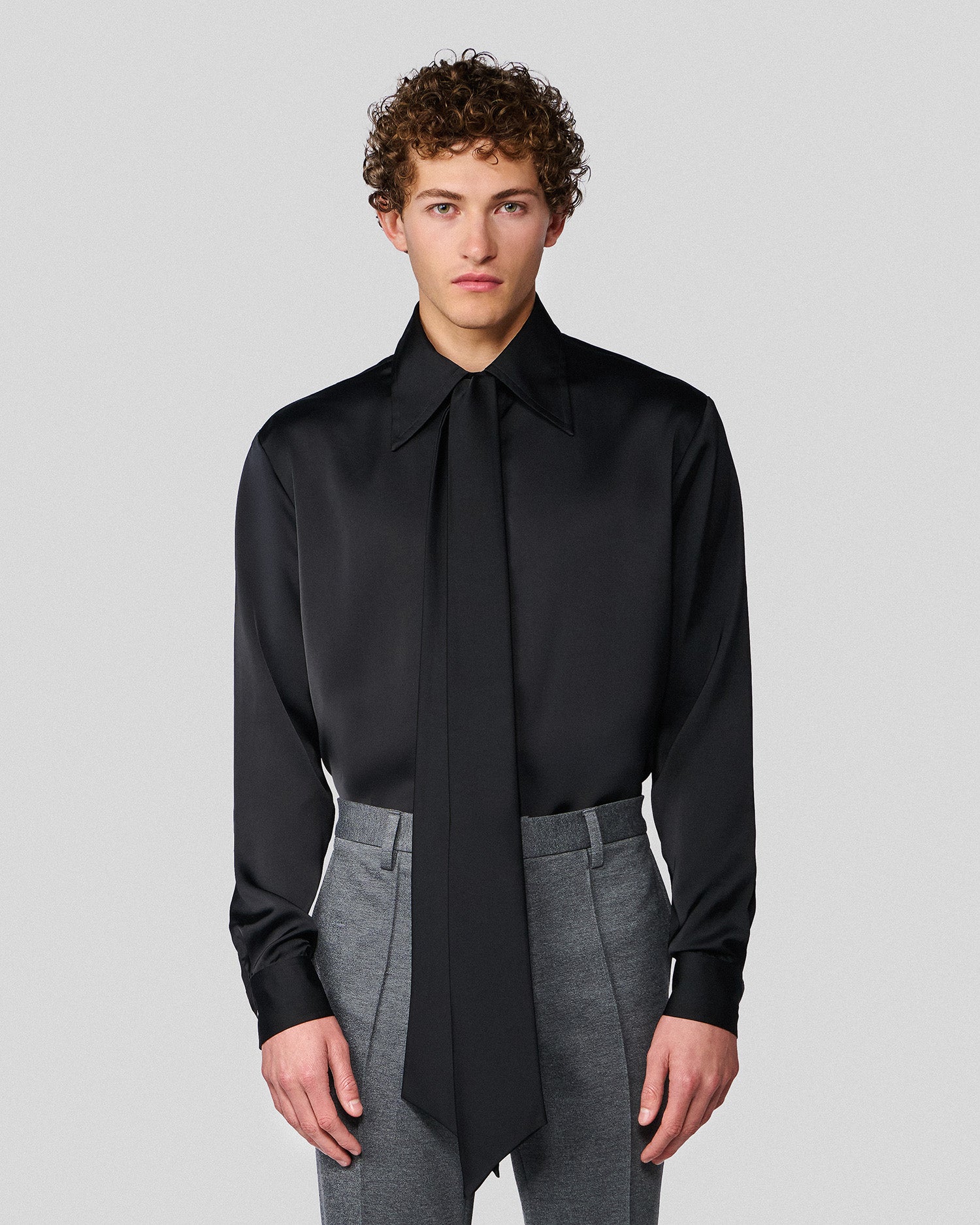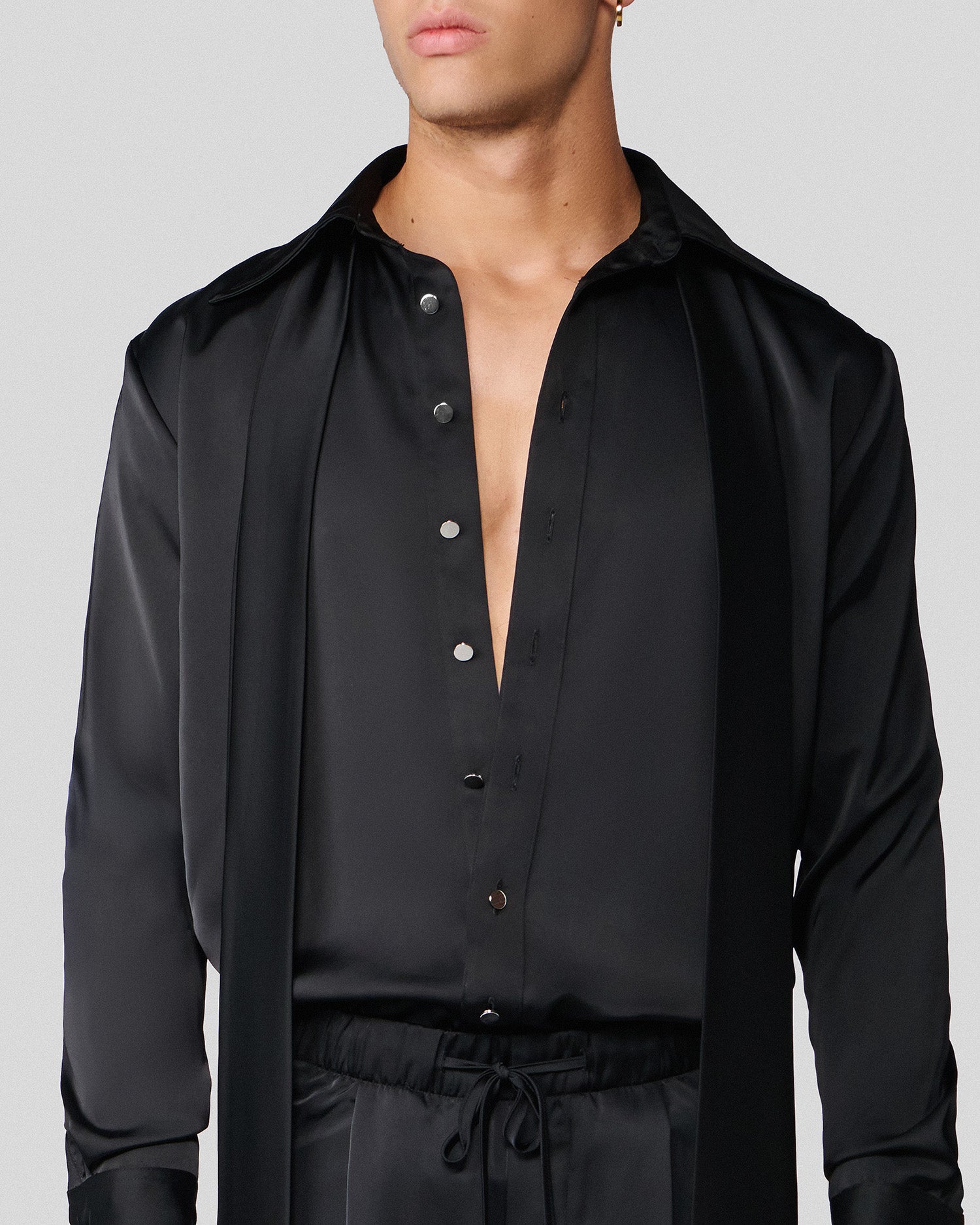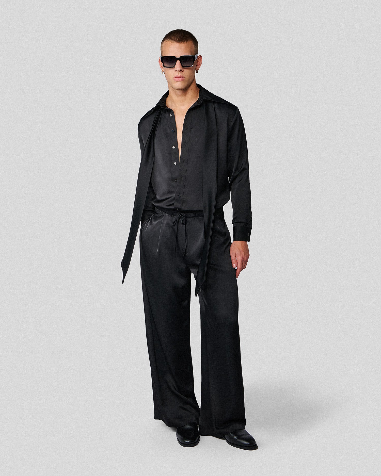 The Ricardo Shirt is a made from sumptuous satin and features a separate scarf that can be worn in a variety of ways, but looks best left loose for a modern relaxed look.