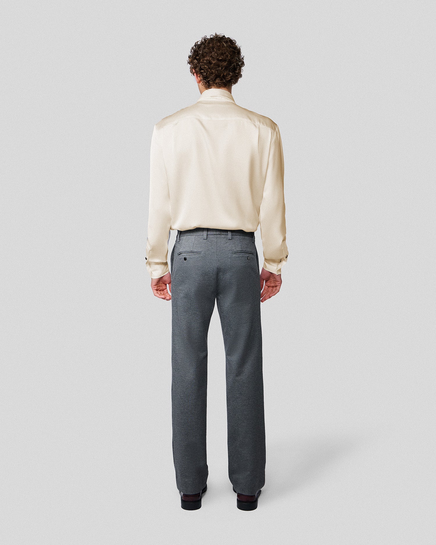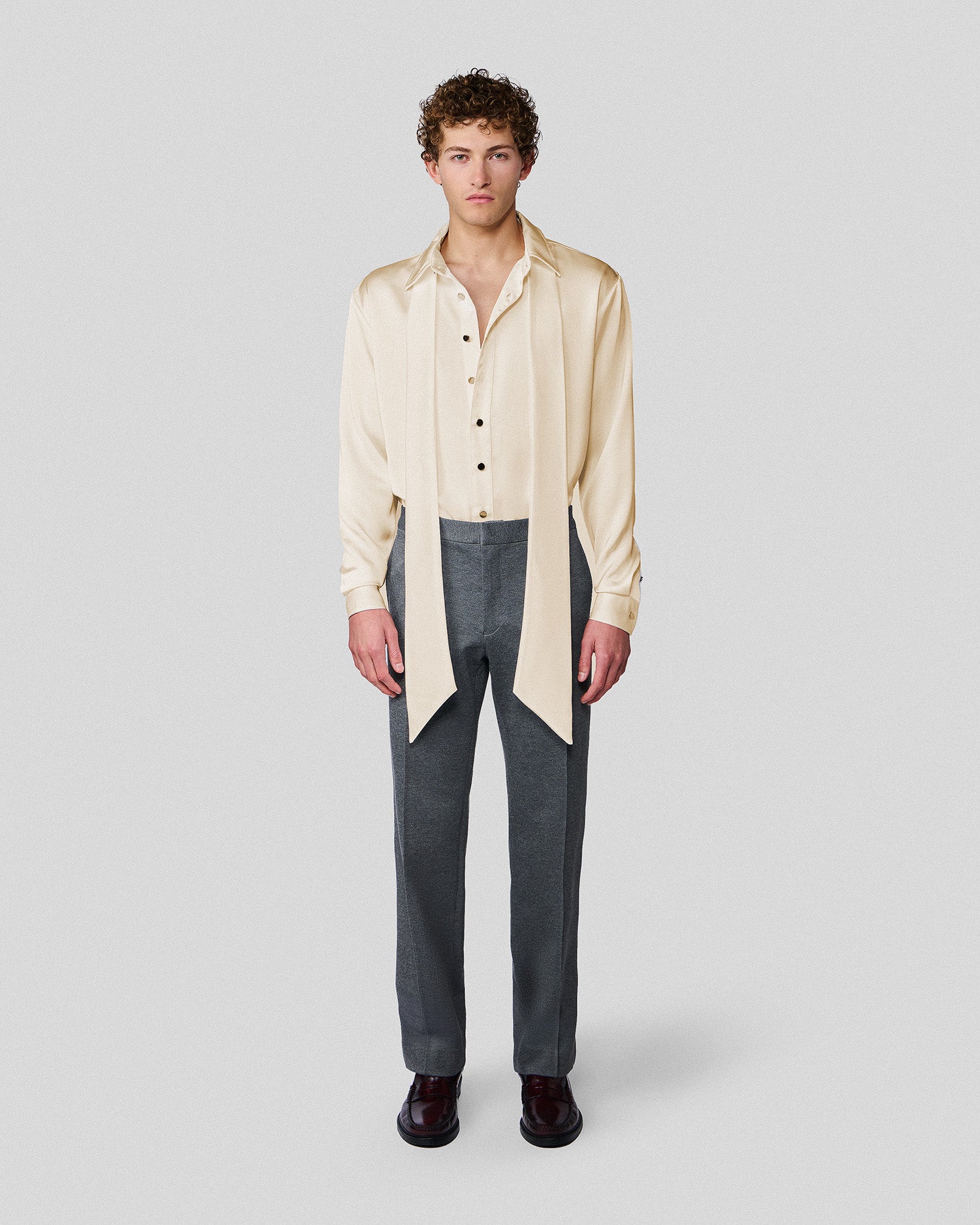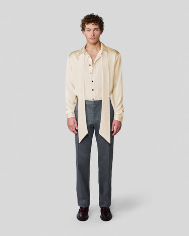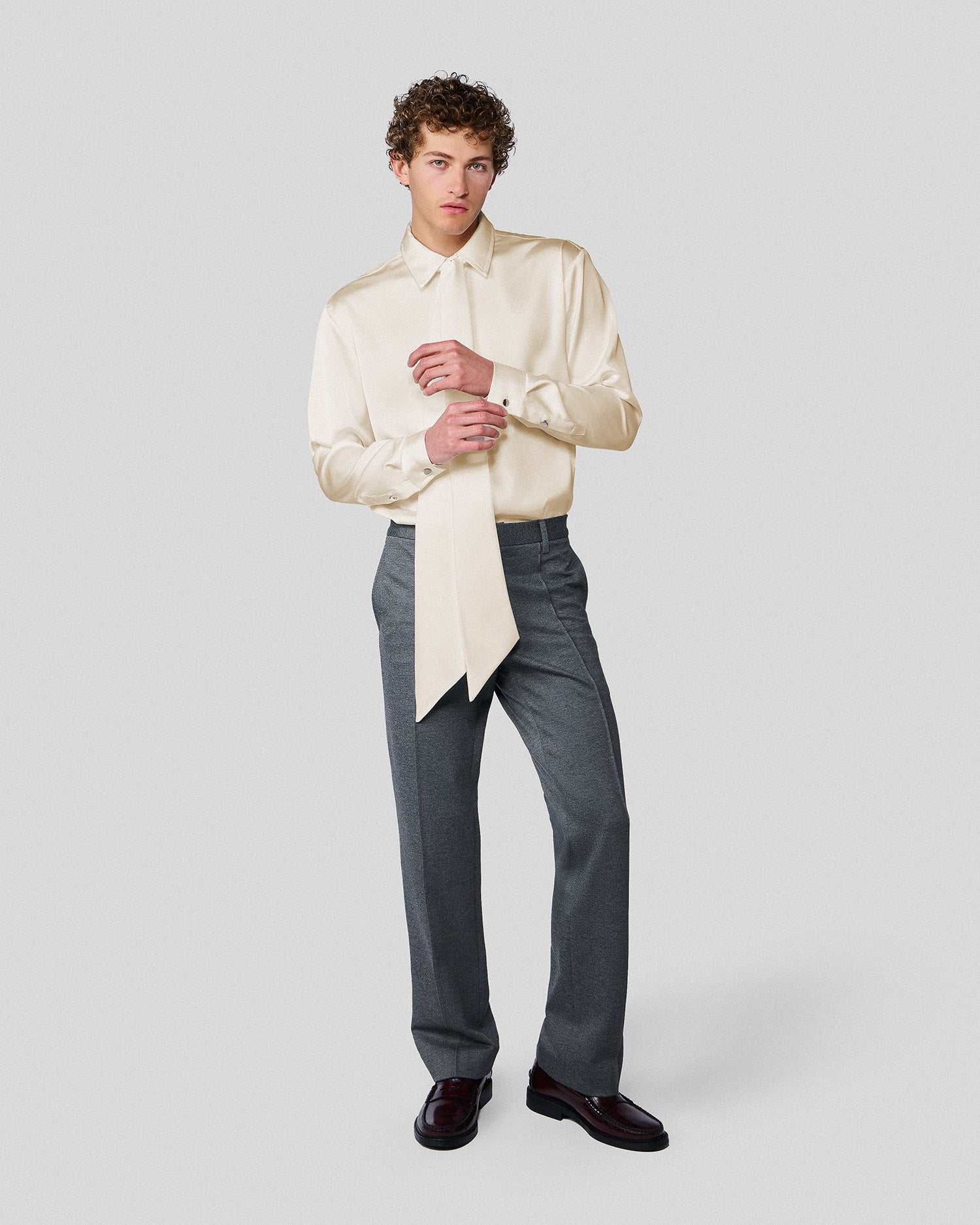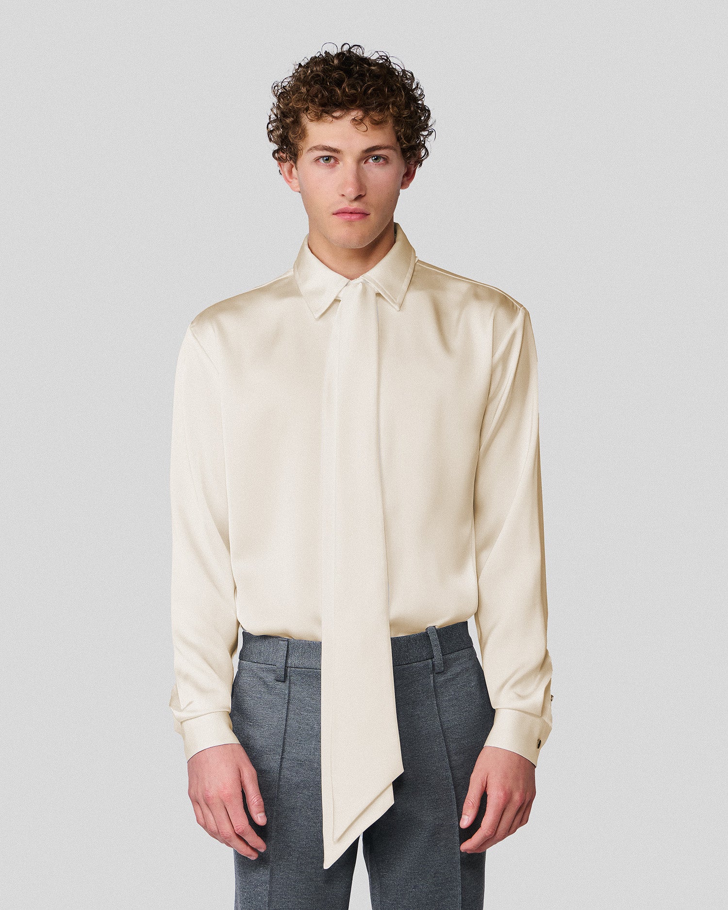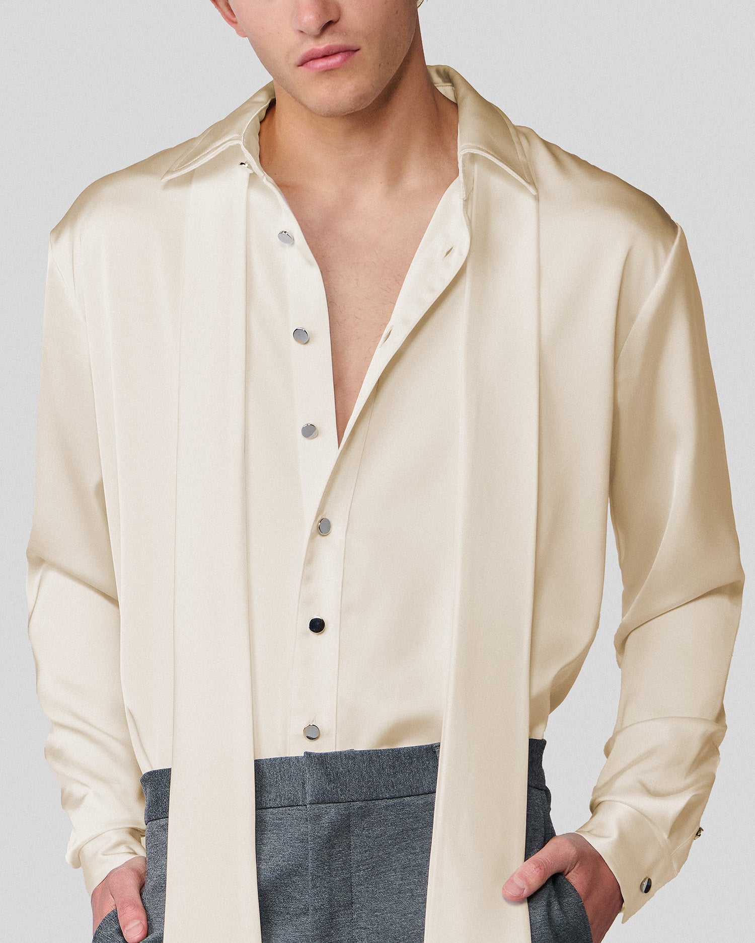The Ricardo Shirt is a made from sumptuous satin and features a separate scarf that can be worn in a variety of ways, but looks best left loose for a modern relaxed look.