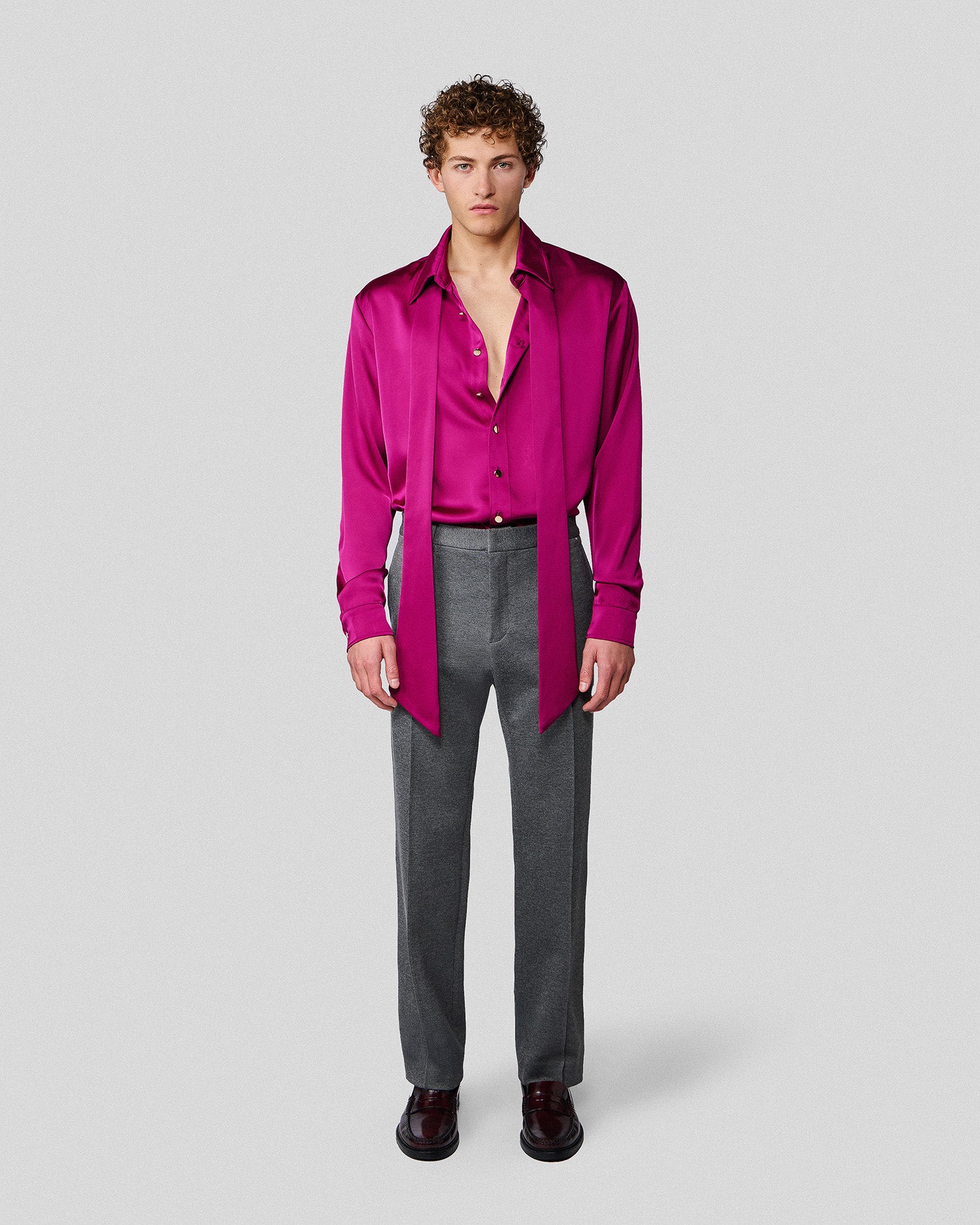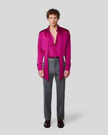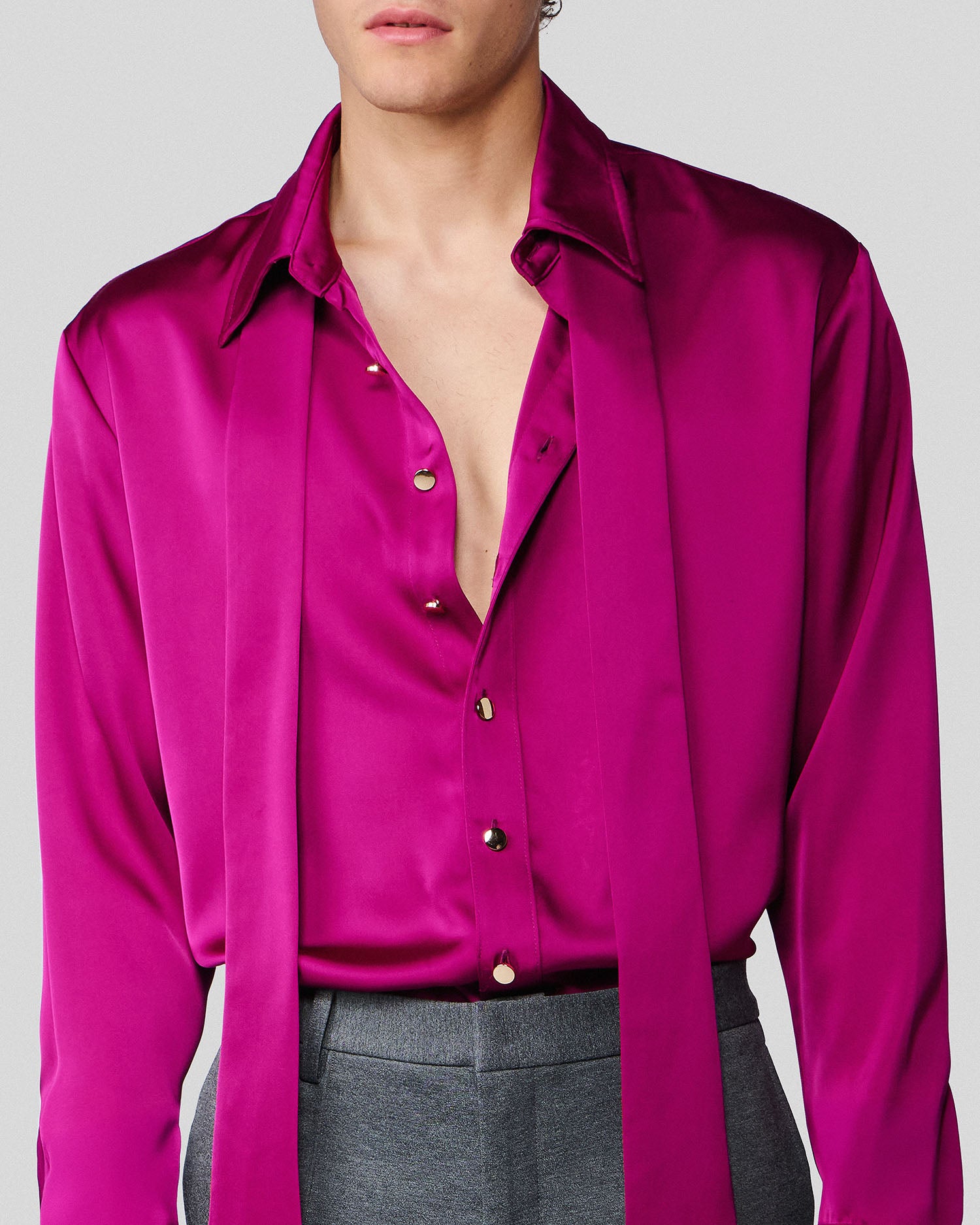 The Ricardo Shirt is a made from sumptuous satin and features a separate scarf that can be worn in a variety of ways, but looks best left loose for a modern relaxed look.