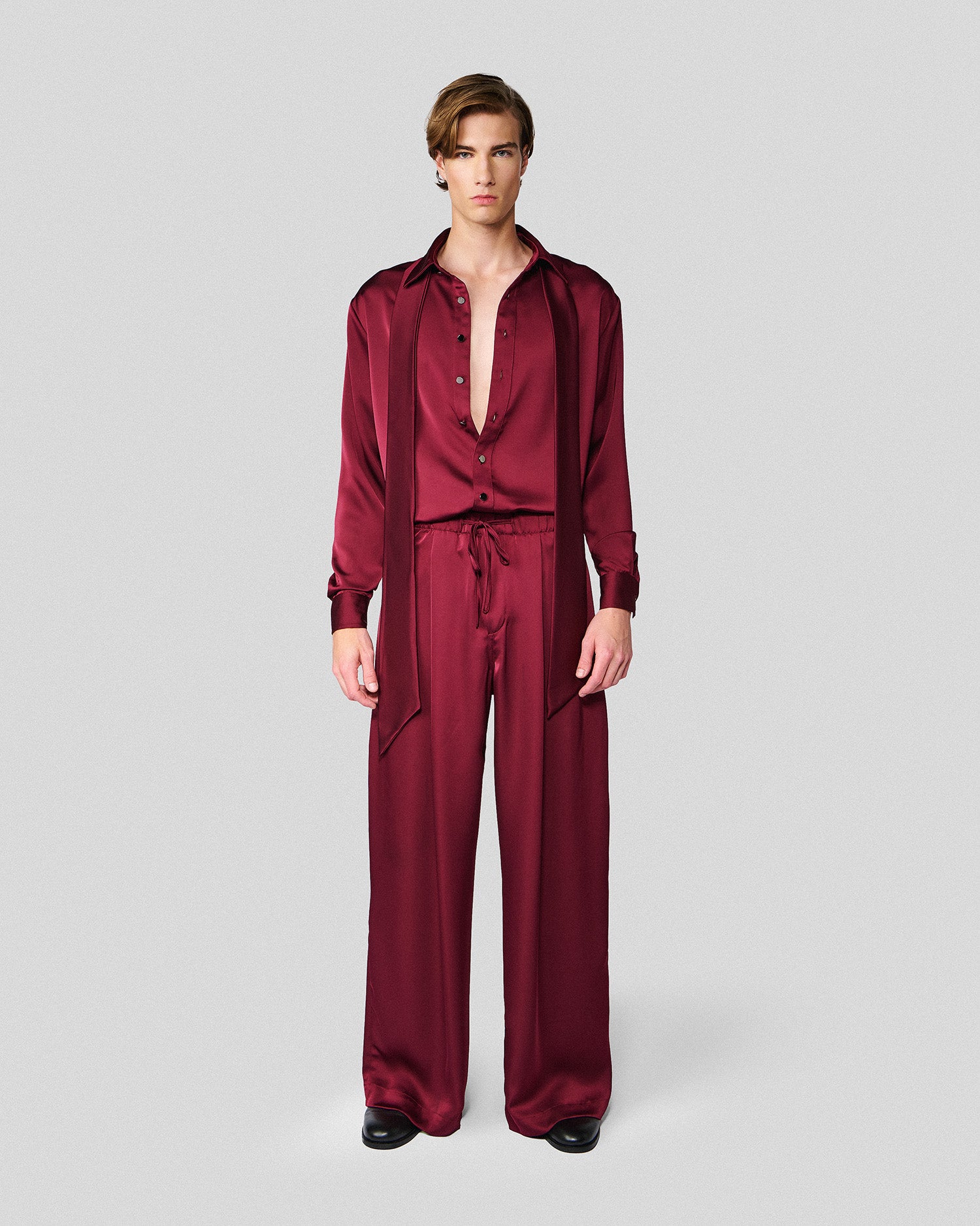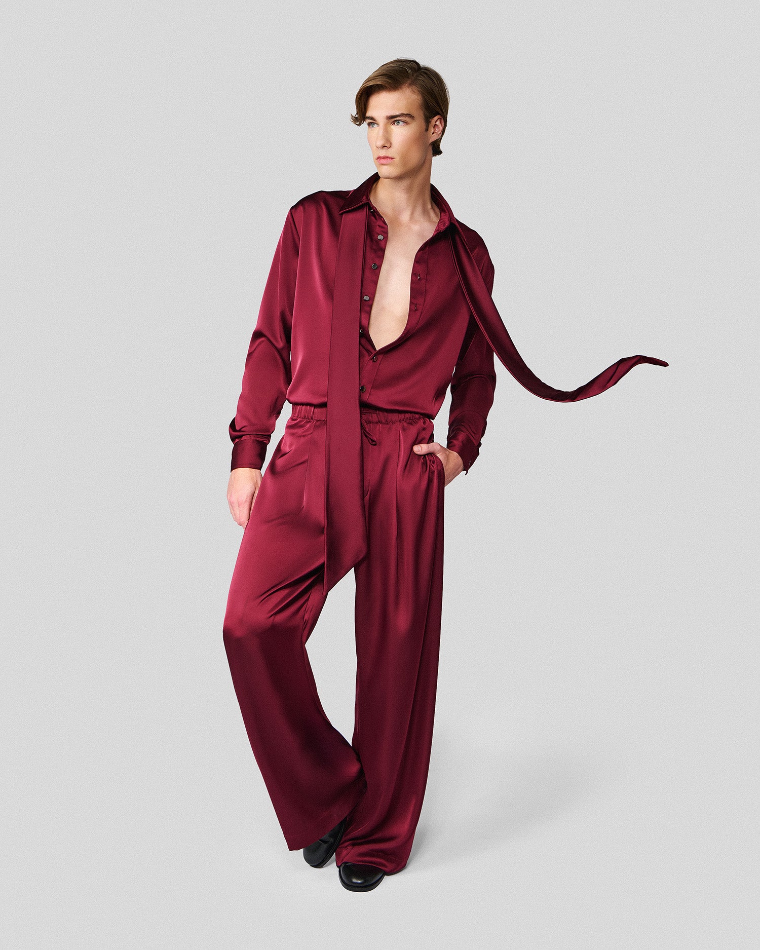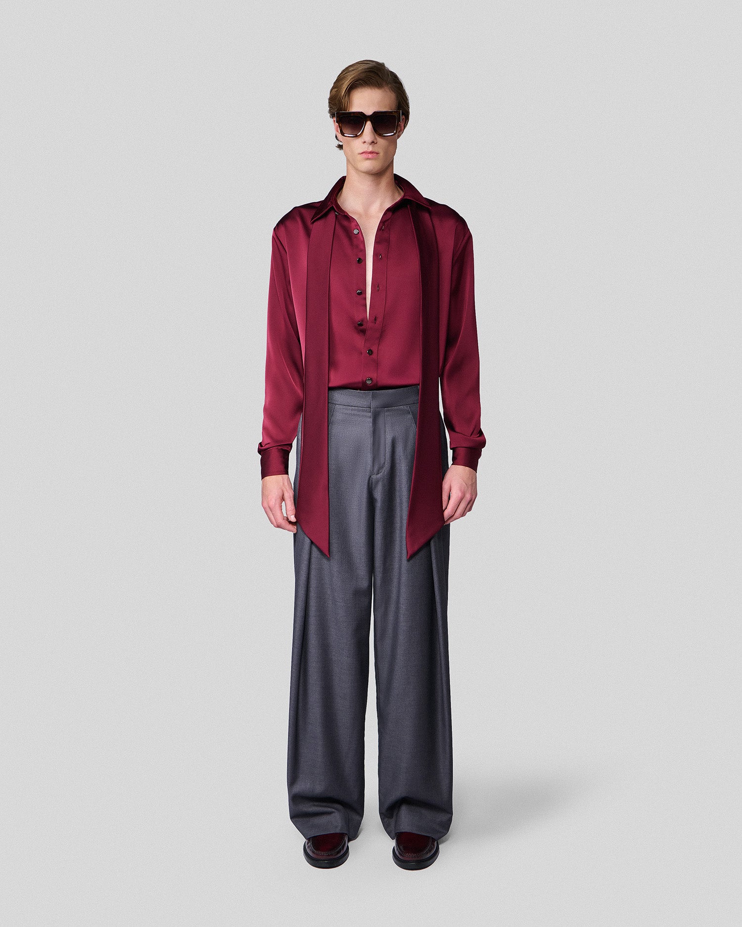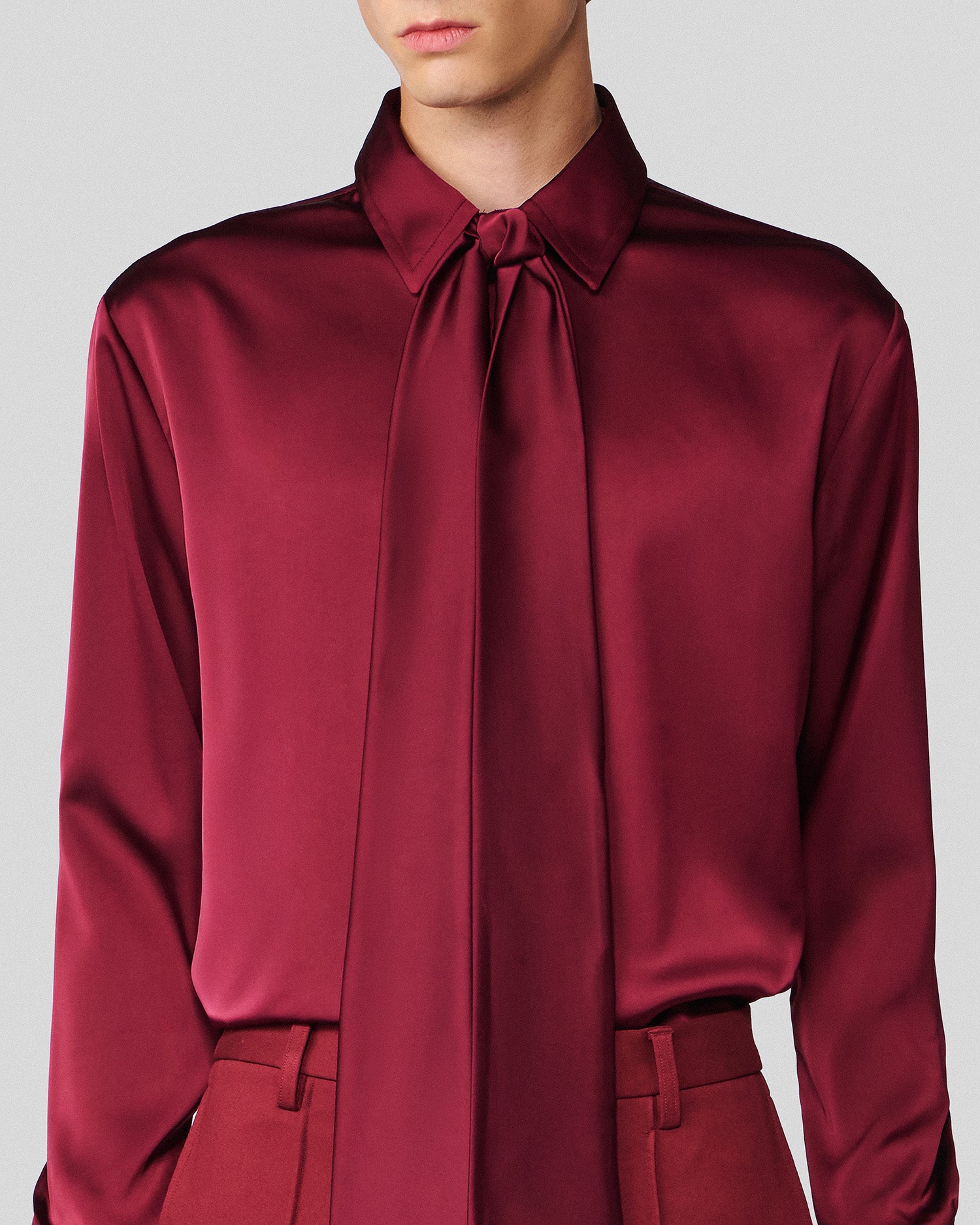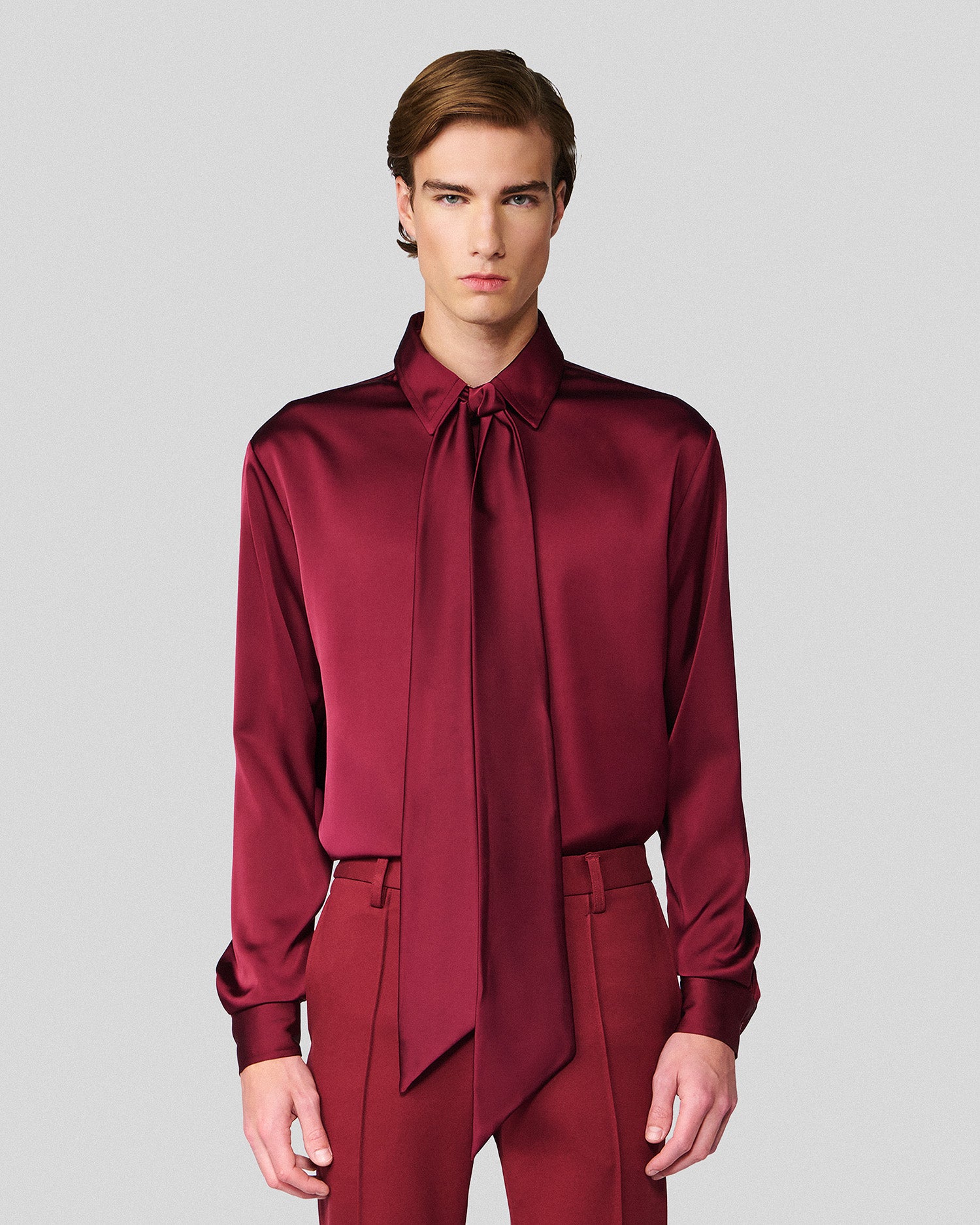 The Ricardo Shirt is a made from sumptuous satin and features a separate scarf that can be worn in a variety of ways, but looks best left loose for a modern relaxed look.