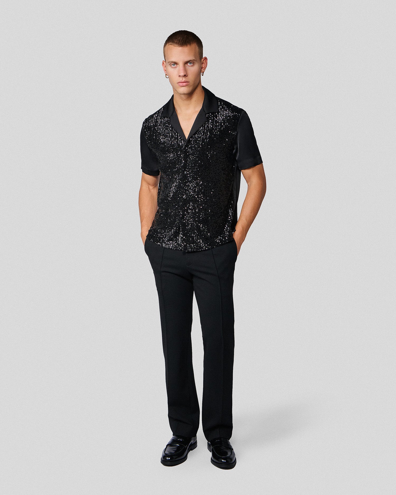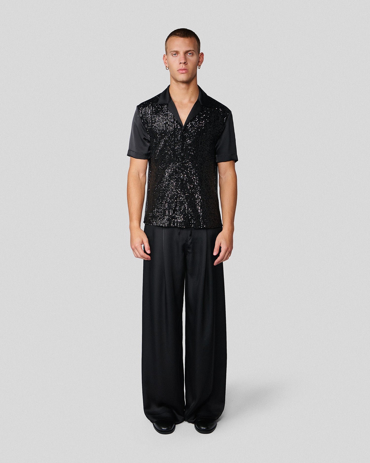 The Shiloh Shirt combines our signature sequins with rich satin for a look that is as laid back as it is elegant.
