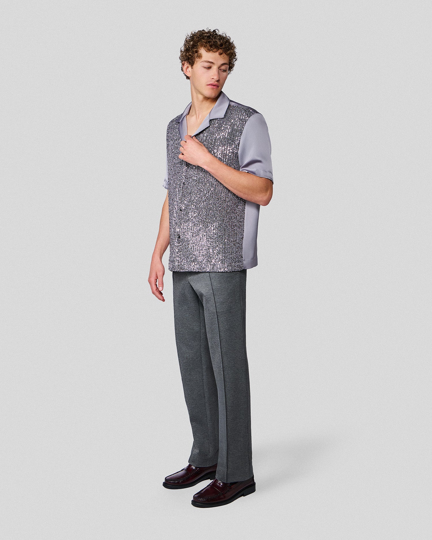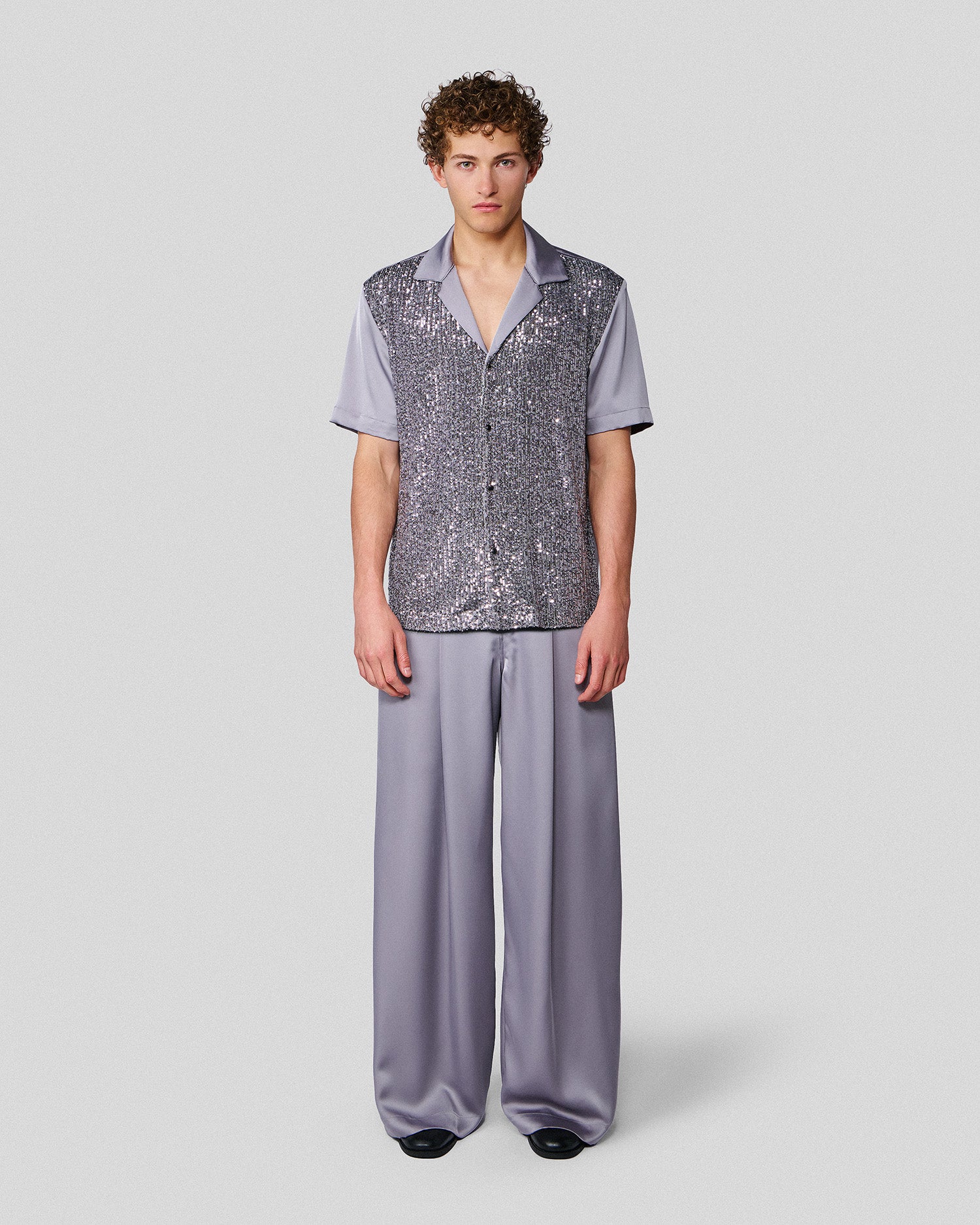 The Shiloh Shirt combines our signature sequins with rich satin for a look that is as laid back as it is elegant.