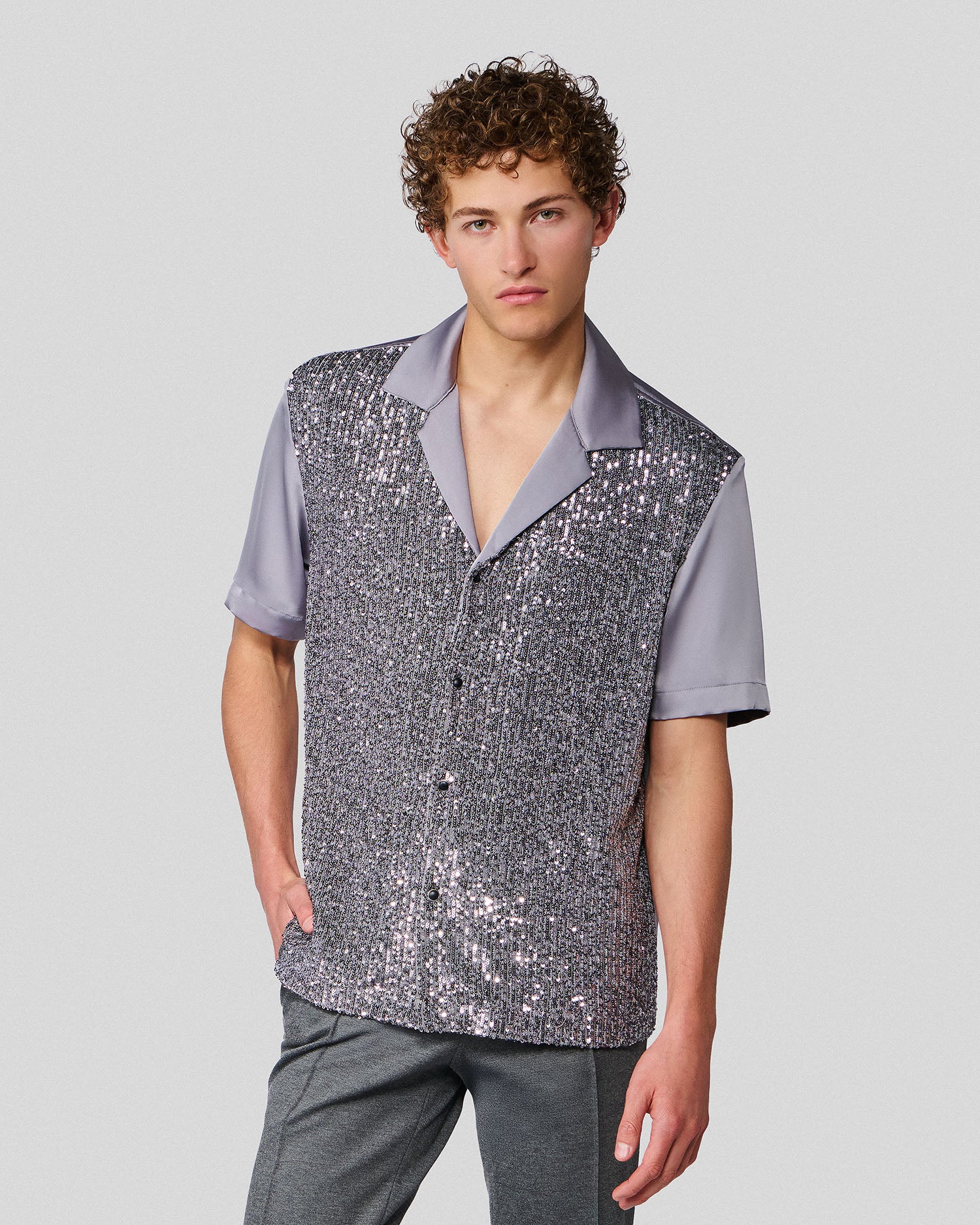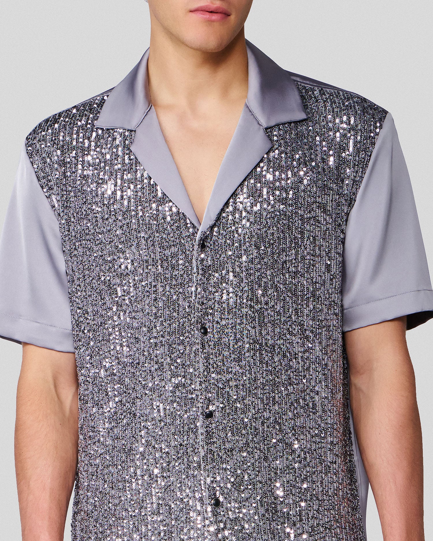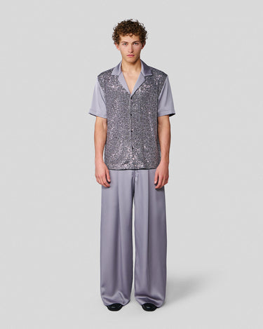 Shiloh Silver Sequin & Satin Bowling Shirt