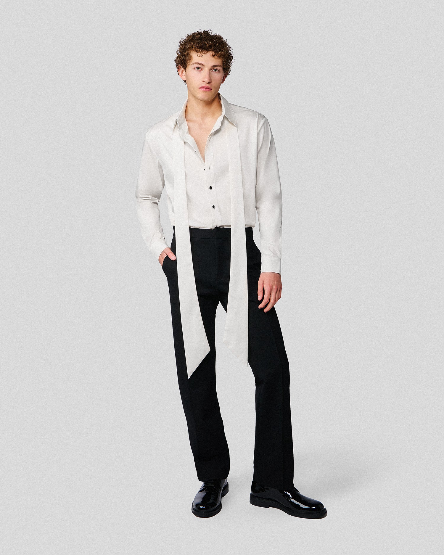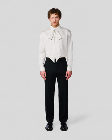 The Oscar Bow Neck Shirt is a perennial favourite. Made from cotton blended stretch this classic shirt features a separate scarf that instantly adds drama and polish to any look.