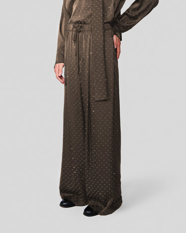 Egon Espresso Crystal Stud Satin Wide Leg Pant