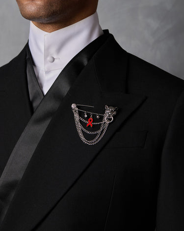 This edgy fashion forward piece is the perfect statement making lapel pin.