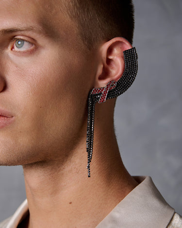 This Red Ribbon Collection ear cuff features a pierced attachment and clip for added security.