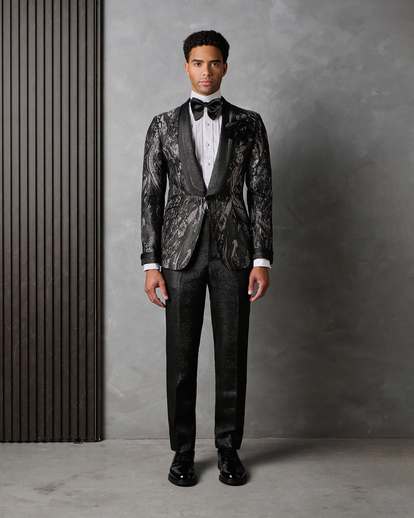 KARSON GUNMETAL BROCADE DINNER SUIT - MADE TO ORDER