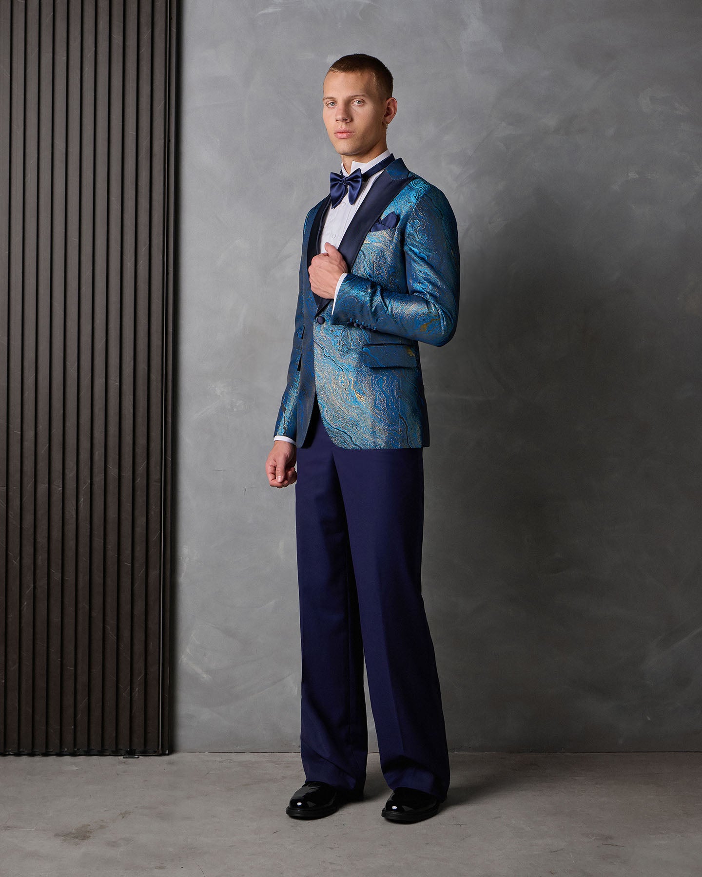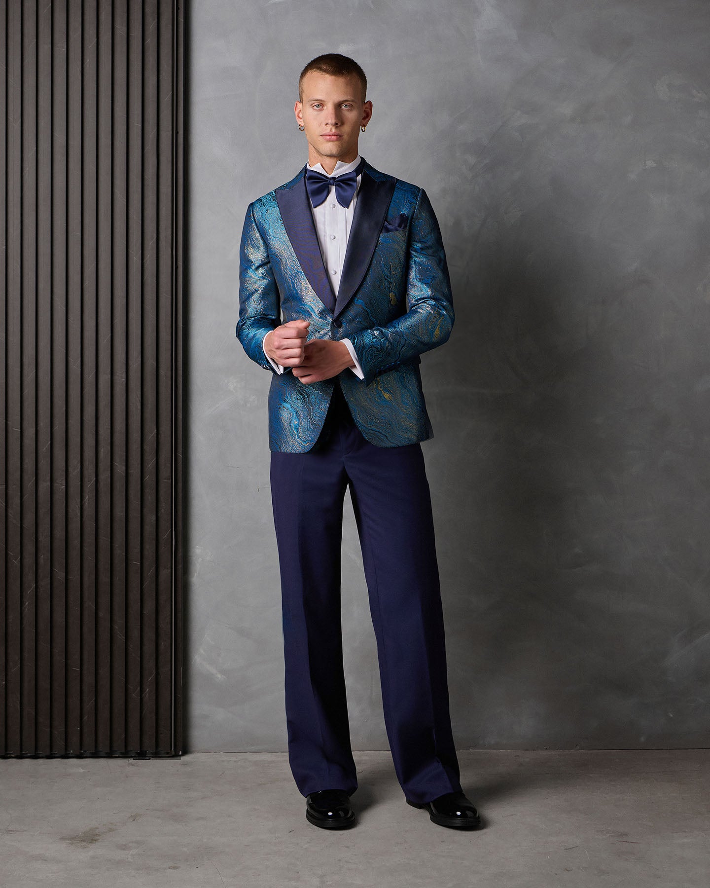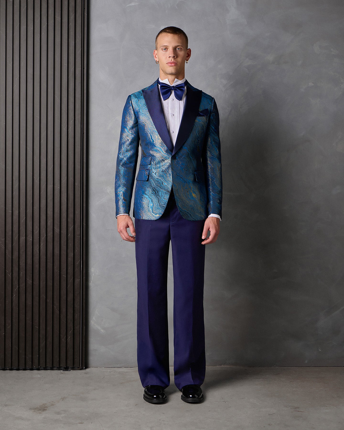 JAMIESON INDIGO JACQUARD/WOOL TUXEDO SUIT - MADE TO ORDER