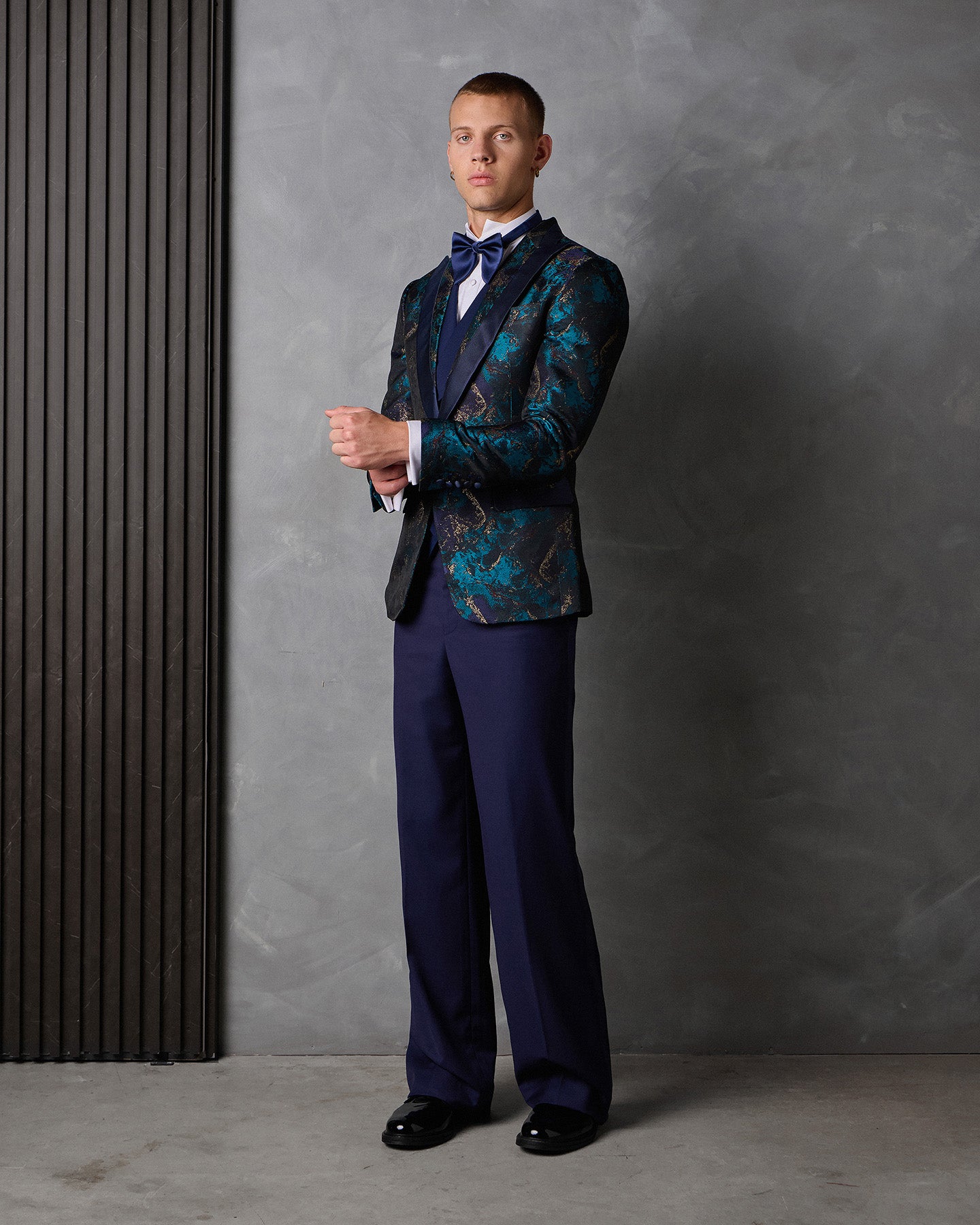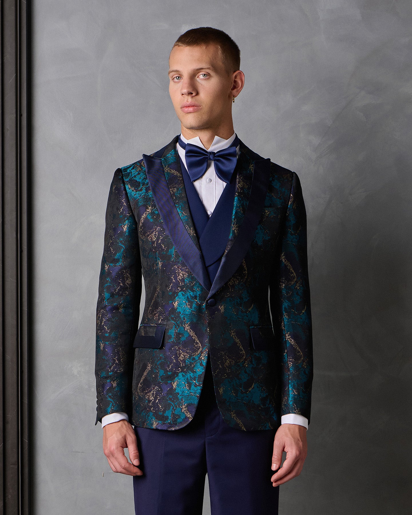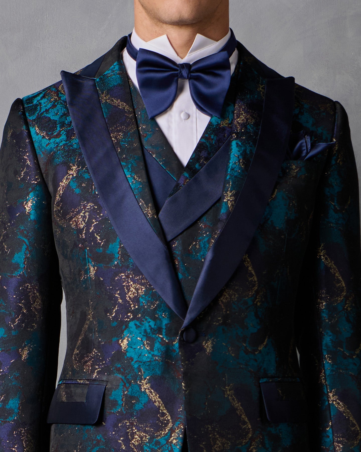 KOLTER TEAL JACQUARD/WOOL TUXEDO SUIT - MADE TO ORDER