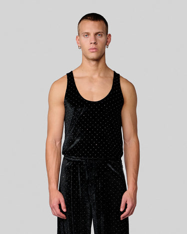 Made from supple stretch velvet with shining crystals the Galaxy Tank features a low cut neckline and slim fit that exudes masculine elegance.