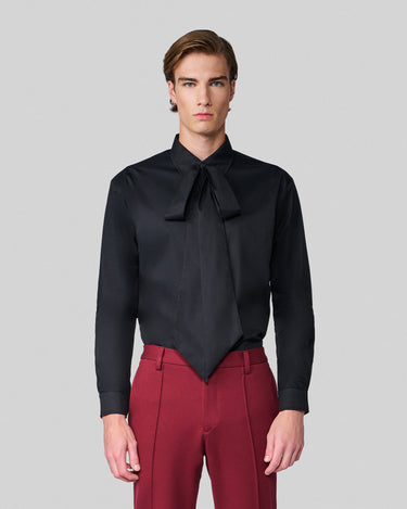 The Oscar Bow Neck Shirt is a perennial favourite. Made from cotton blended stretch this classic shirt features a separate scarf that instantly adds drama and polish to any look.