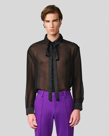 The Ignacio Shirt is crafted from super-fine crepe chiffon trimmed in satin. A separate necktie can be worn loose, looped of tied in a bow at the neck.