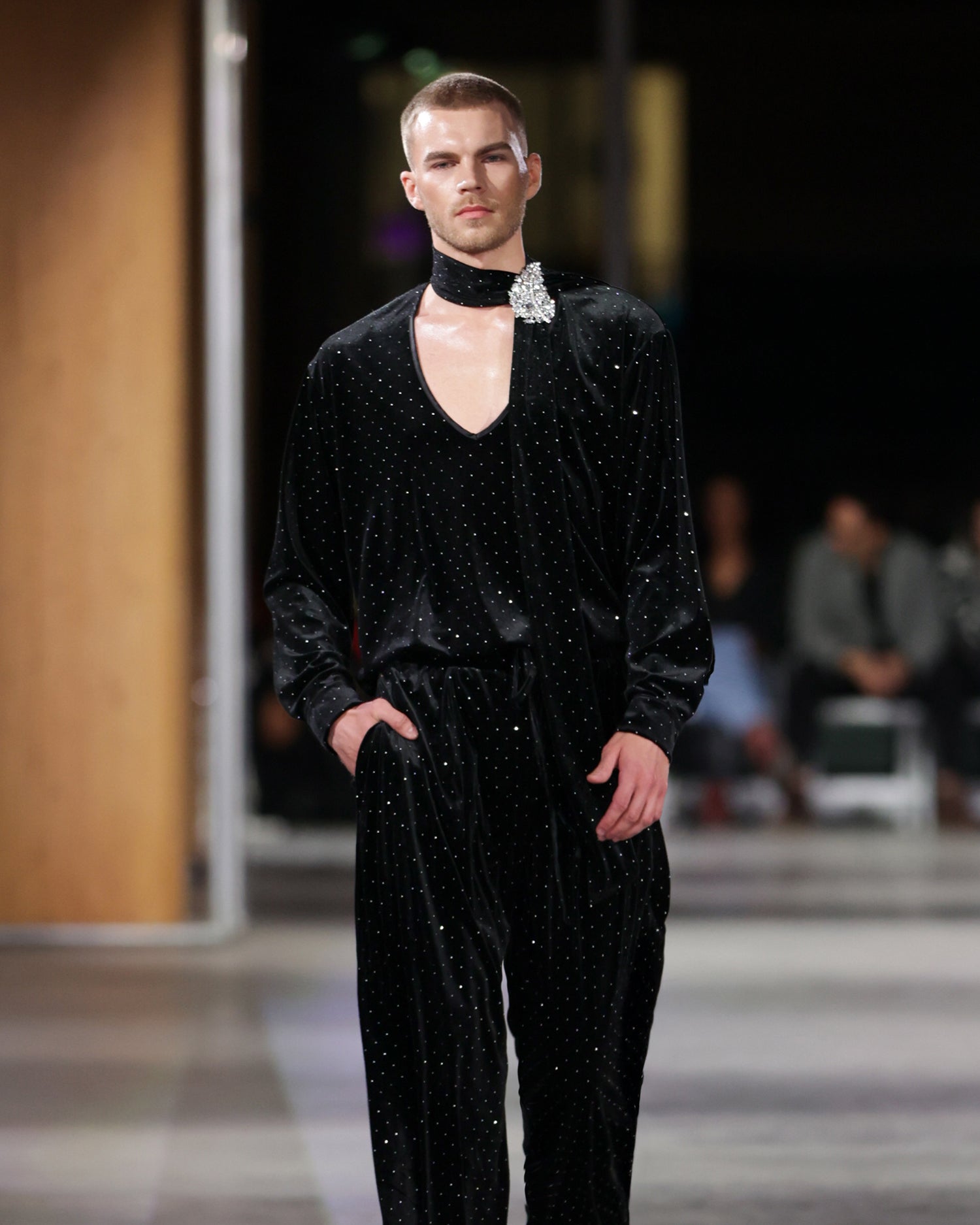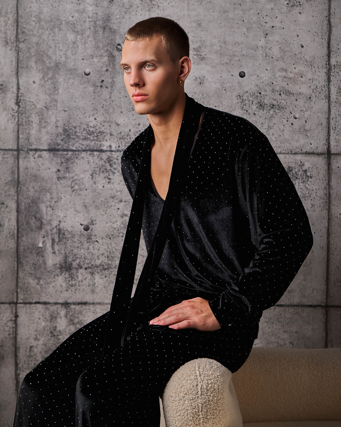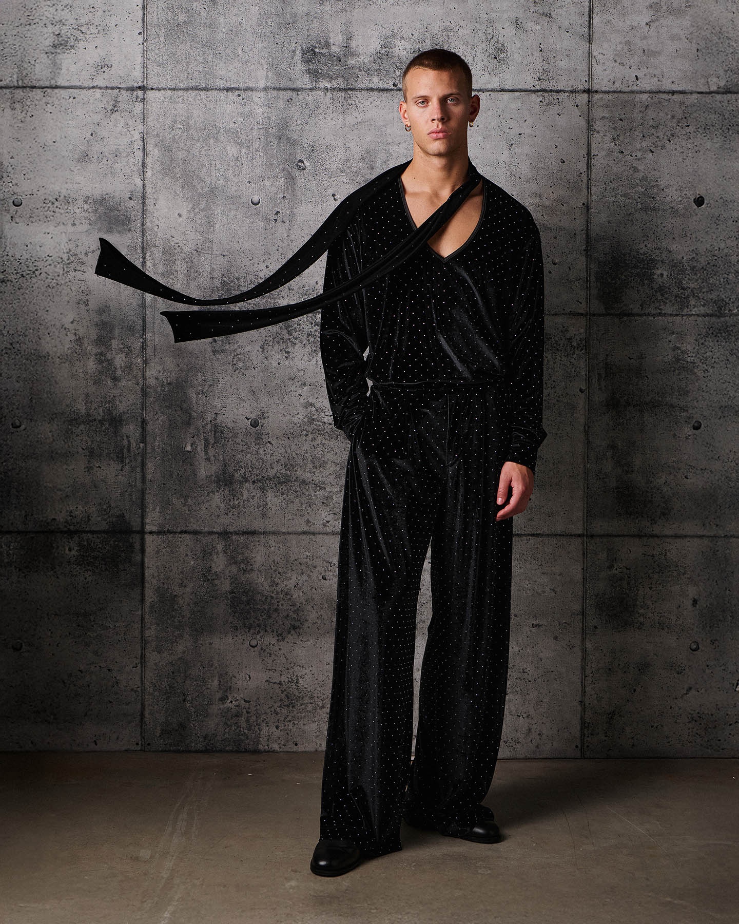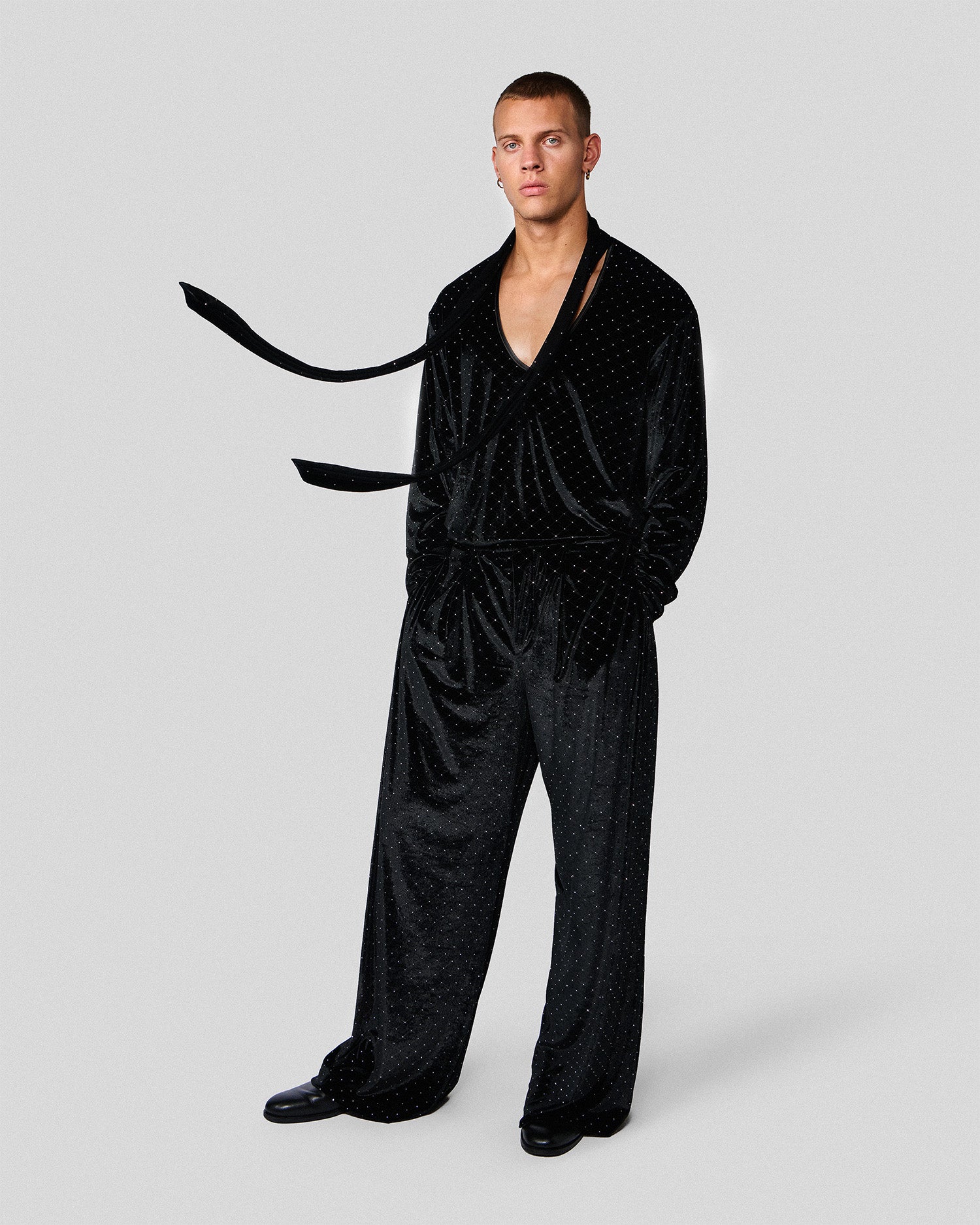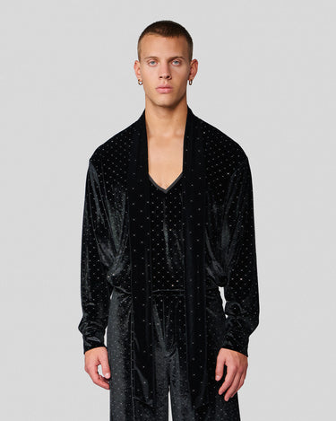 The Vanguard Shirt is crafted from a sumptuous stretch velvet studded with sparkling crystals.