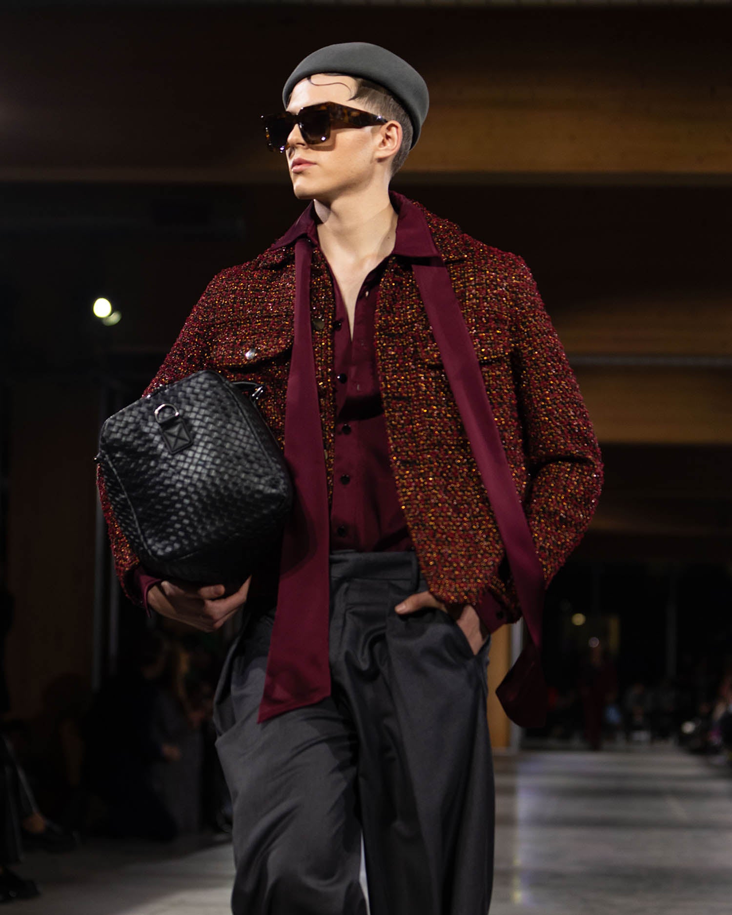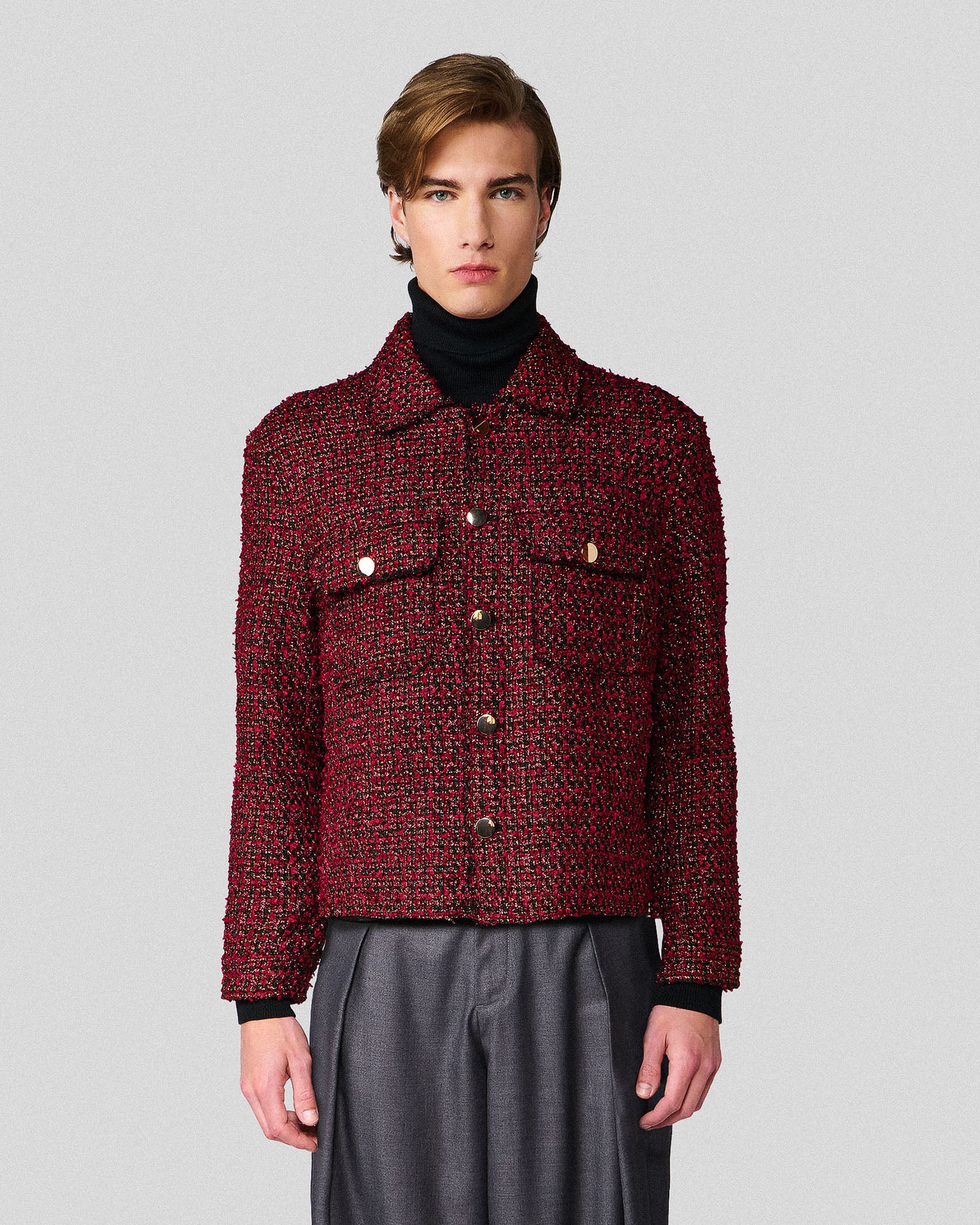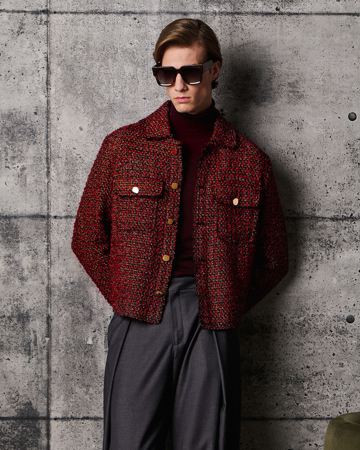 The Emilio Jacket is crafted from a rich Italian houndstooth tweed with a subtle lurex sparkle. The relaxed body fit and slightly crop cut make this piece a standout look for the season yet with timeless appeal.