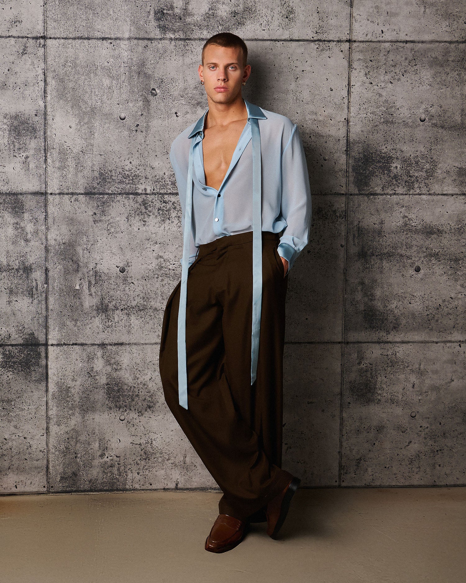 Ignacio Powder Blue Chiffon Shirt/Tie