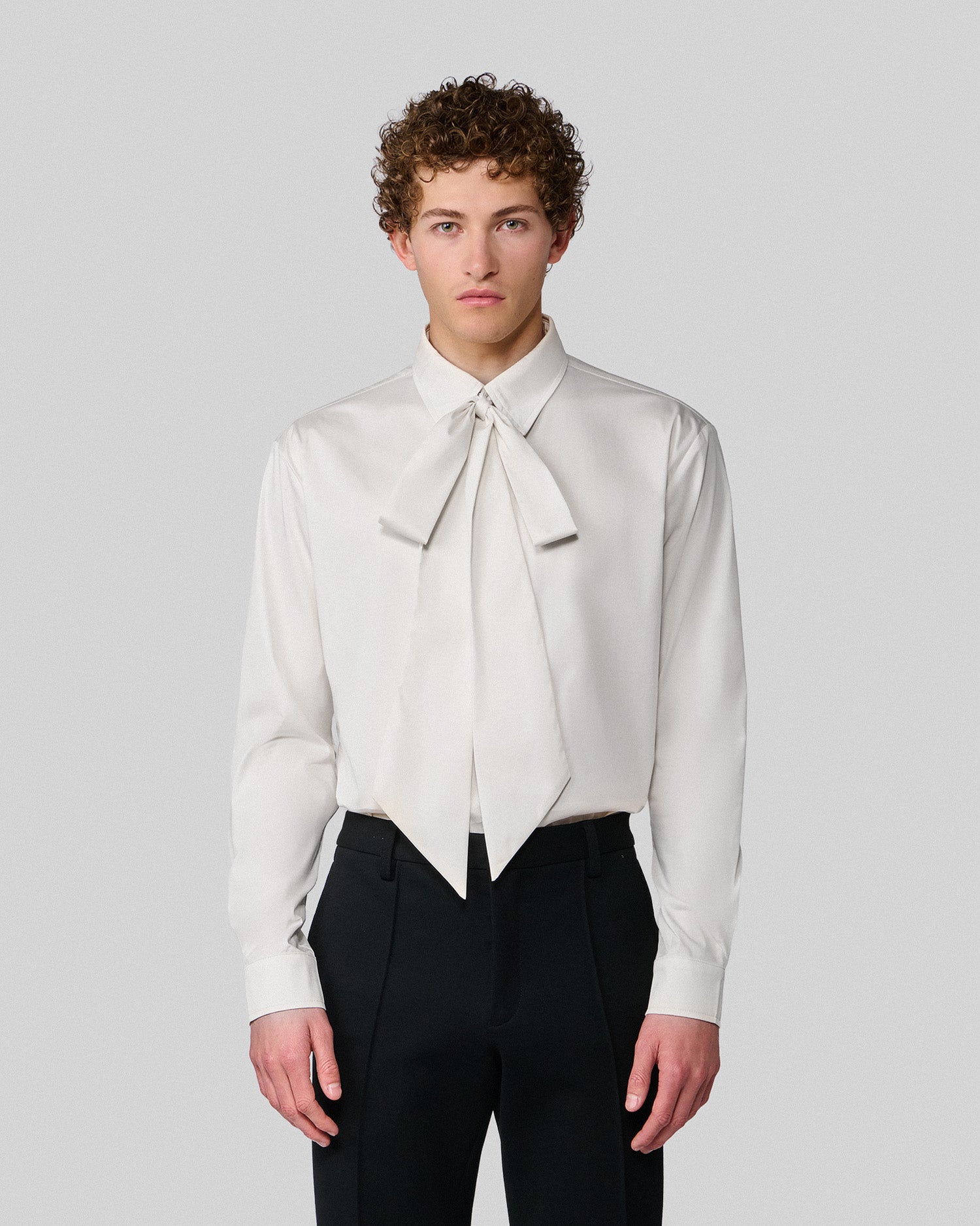 The Oscar Bow Neck Shirt is a perennial favourite. Made from cotton blended stretch this classic shirt features a separate scarf that instantly adds drama and polish to any look.